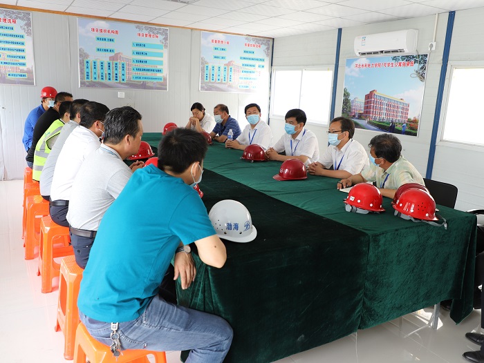 金年会7号学生公寓即将全面封顶,为确保工程质量和进度,6月23日上午8:00,学校党委书记陈进杰、校长向辉、副校长于振海以及后勤管理处、党政办、宣传部相关部门领导到7号学生公寓施工现场进行调研,并为奋战在一线的工...