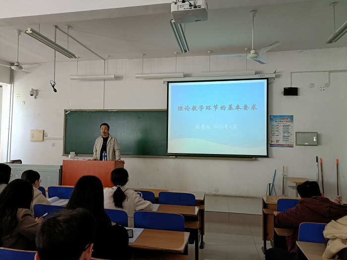 为帮助新入职教师尽快熟悉教学规范,加强课程思政建设,提高新入职教师课程思政水平和业务能力,4月27日下午,学院在三教B201教室为新入职教师举办了教学专题讲座。讲座分为两部分,分别邀请了教务处副处长王以明、基...