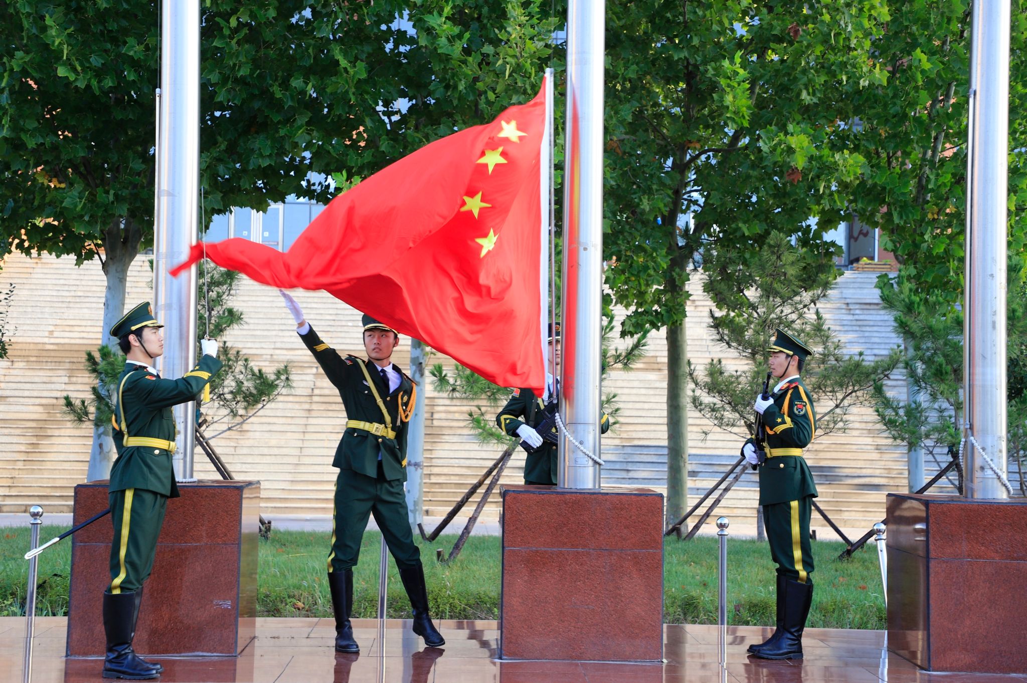 秋风猎猎展红旗,晨曦煌煌贺华诞。为庆祝新中国成立75周年,进一步弘扬爱国主义精神,增强师生爱国意识和民族自豪感,10月1日上午,金年会隆重举行庆祝新中国成立75周年升旗仪式。党委书记张效松、校长王滨、党委副书记崔立功、副校长于振海、副校长杨凯及师生代表共计1000余人参加了升旗仪式。升旗仪式由校长王滨主持。上午7点,升旗仪式正式开始。国旗护卫队队员迈着铿锵有力的步伐,护卫五星红旗来到升旗台。伴随着雄壮的《义勇军进行曲》...