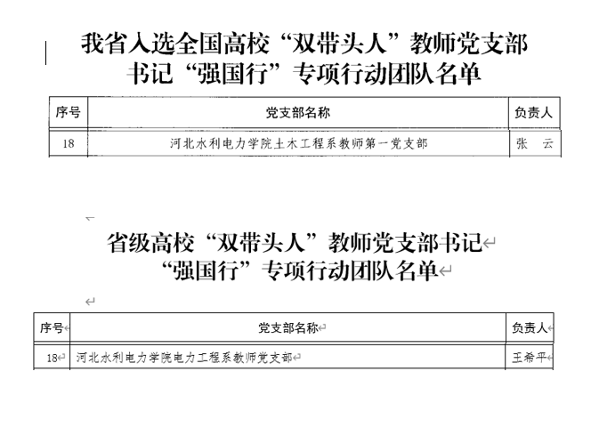 近日,教育部办公厅公布了全国高校“双带头人”教师党支部书记“强国行”专项行动团队名单,金年会土木工程系教师第一党支部成功入选全国高校“双带头人”教师党支部书记“强国行”专项行动团队,电力工程系教师党支部入选河北省高校“双带头人”教师党支部书记“强国行”专项行动团队。此次活动为首批“强国行”专项行动团队评选,旨在创新落实立德树人根本任务,充分发挥“双带头人”的示范引领作用,聚焦服务国家重大战略和地方经济社会高质量发展,...