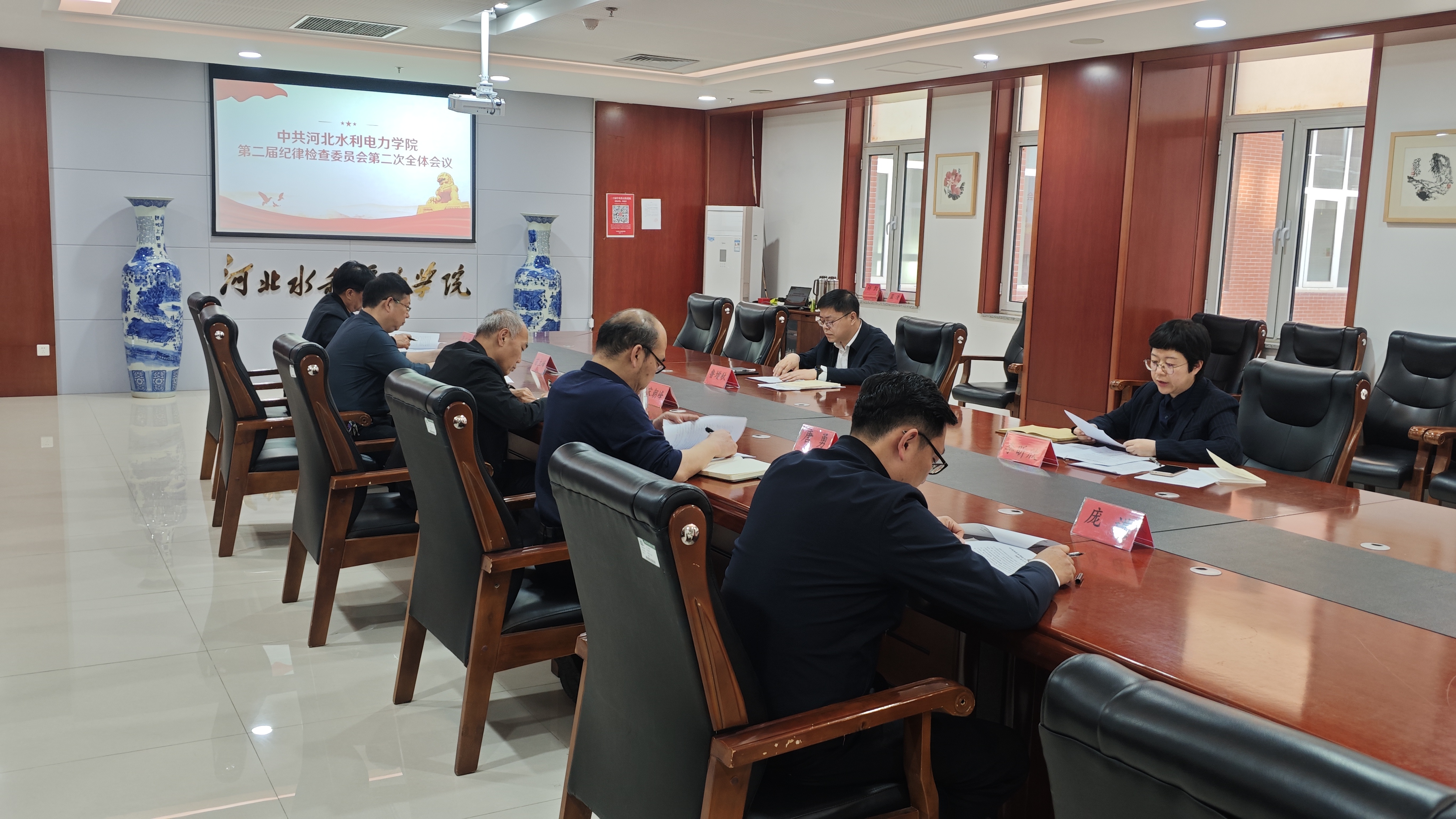 4月22日下午,中共金年会jinnianhuicom第二届纪律检查委员会第二次全体会议在弘文守正楼1102会议室召开。纪委书记鲁增秋出席并主持会议,校纪委委员出席会议,专职纪检监察干部列席会议。会议学习了习近平总书记关于加强党的作风建设的重要论述精神,传达学习了中共中央办公厅《关于在全党开展深入贯彻中央八项规定精神学习教育的通知》,审议了2025年学校纪委工作要点和《关于纪委委员、二级党组织纪检委员、党支部纪检委员工作职责的若干规定》...
