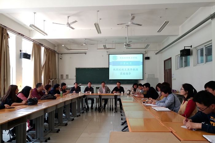 4月19日,应计算机系邀请,浙江水利水电学院王英华教授在笃行楼A109举办“学士学位授权评估”专题讲座,计算机系党总支书记吕玉明、系主任裴祥喜、评建办公室主任徐艳及计算机系全体教师参加了讲座,讲座由计算机系主...