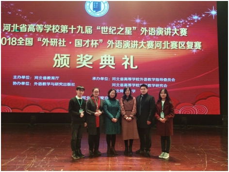 河北省第十九届“世纪之星”外语演讲大赛于2018年11月17-18日在河北师范大学成功举办,来自全省103所高校的410多名选手参加了比赛,金年会共有四名选手参赛,其中,刘泽龙荣获青年教师组二等奖,造价201654班樊娇龙和国...