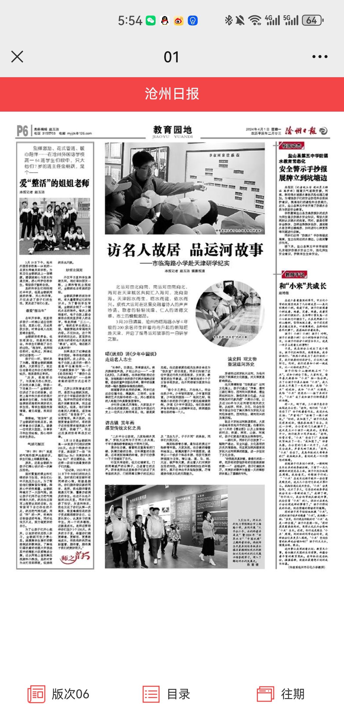 沧州日报4月1日第6版,报道了金年会“大手拉小手、水利科普并肩走”暨2024年“世界水日”“中国水周”主题科普活动。(供稿单位:科技处)