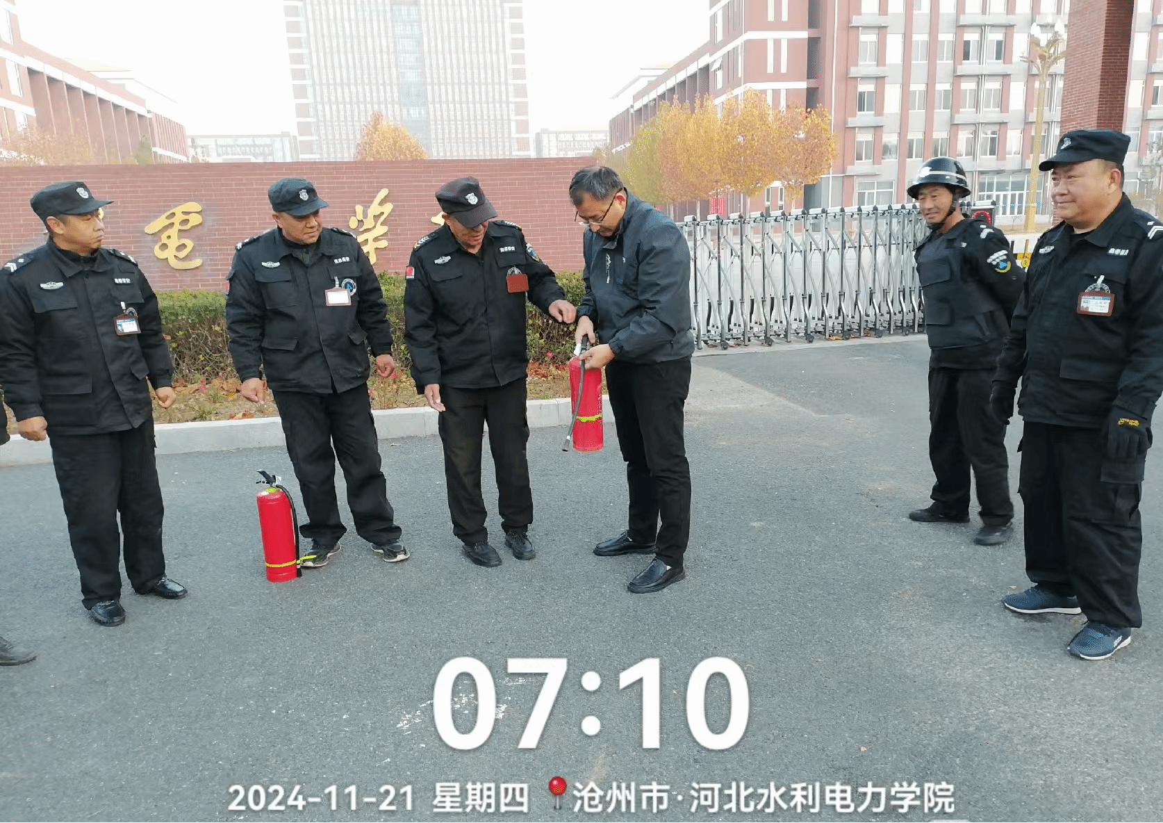 为有效避免校园安全事件发生,提高保安员面对突发安全事件的应急处理能力,确保师生人身和校园财产安全。11月21日上午,安全工作处组织保安队先后开展灭火演练及反恐防暴应急演练活动。首先,全体保安员在南门集合开展灭火演练。安全工作处处长欧仁辉讲解了消防安全知识,详细阐述了火灾的危害性,重点介绍了ABC型干粉灭火器的灭火原理、适用范围以及使用时的关键步骤和注意事项。随后,参加演练人员手持灭火器,依次上前进行实操演练,...