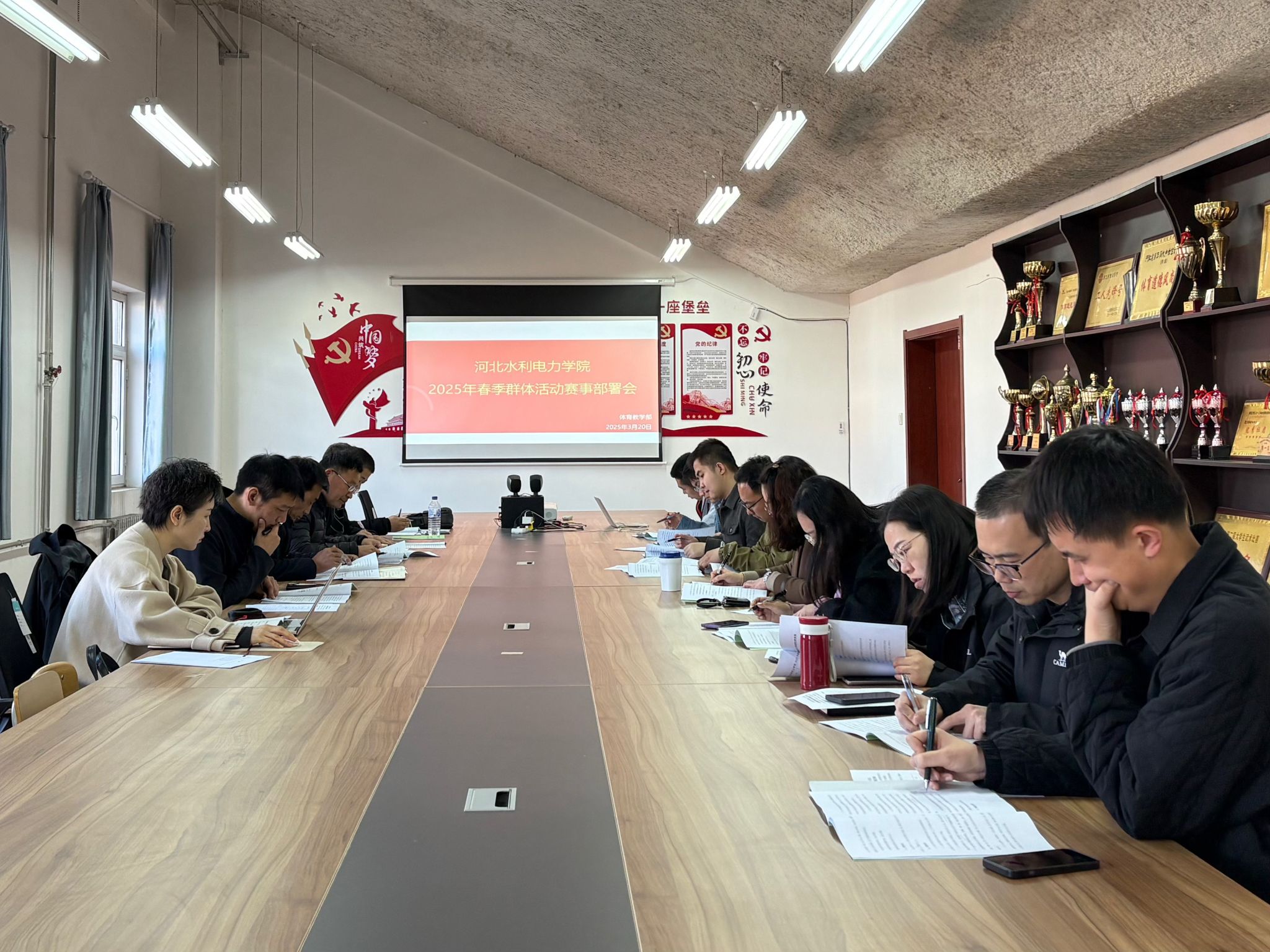 为深入贯彻落实“健康第一”的校园体育理念,统筹推进本学期学生群体活动高质量发展,3月20日上午,体育教学部在体育场会议室举行了2025年春季群体活动赛事部署大会。大会由体育教学部主任周保国主持,各系负责人参加了会议。会议以“规范流程、参与广泛、育人实效”为主线,重点研讨了本学期学生群体赛事的整体安排。周保国首先宣读了金年会本学期学生群体赛事的活动安排,对即将开展的第八届男子足球联赛和第七届体育运动会进行了详细介绍,...