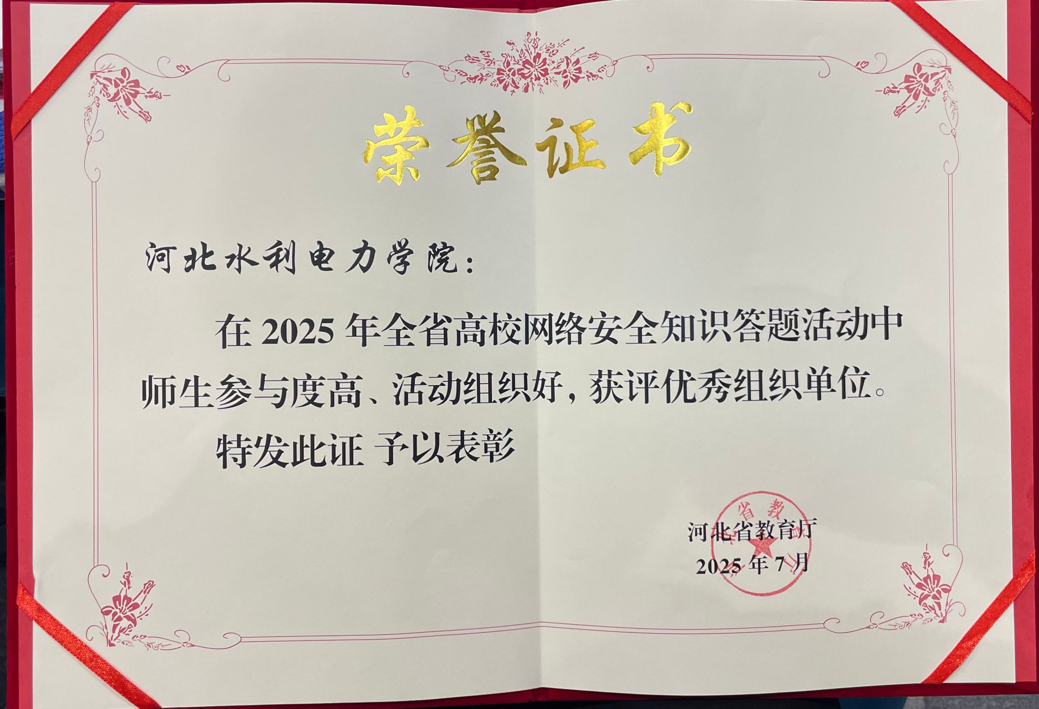 7月16日,在河北省教育厅举办的全省教育系统网络安全学术研讨班开班式上,金年会凭借在网络安全知识答题活动中的出色表现,荣获“优秀组织奖”荣誉。今年5月,接到省教育厅关于开展网络安全知识在线答题活动的通知后,金年会迅速响应。在现代教育技术中心的统筹协调下,全校上下形成联动机制:校领导亲自批示部署,各部门通力配合,师生员工积极参与,参与率位居全省高校前列。通过本次活动,系统普及了《网络安全法》《数据安全法》等法律法规知识,...