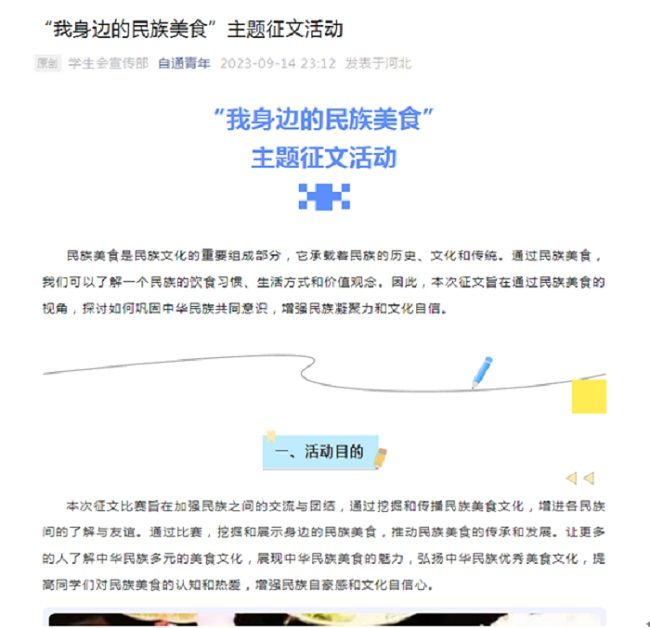 2023年9月是我省第14个民族团结进步宣传月,为全面贯彻落实习近平总书记关于加强和改进民族工作的重要思想以及视察河北重要讲话和重要指示批示精神,9月6日—28日,金年会以铸牢中华民族共同体意识为主线,组织师生开展了丰富多彩的民族团结进步宣传月系列活动。