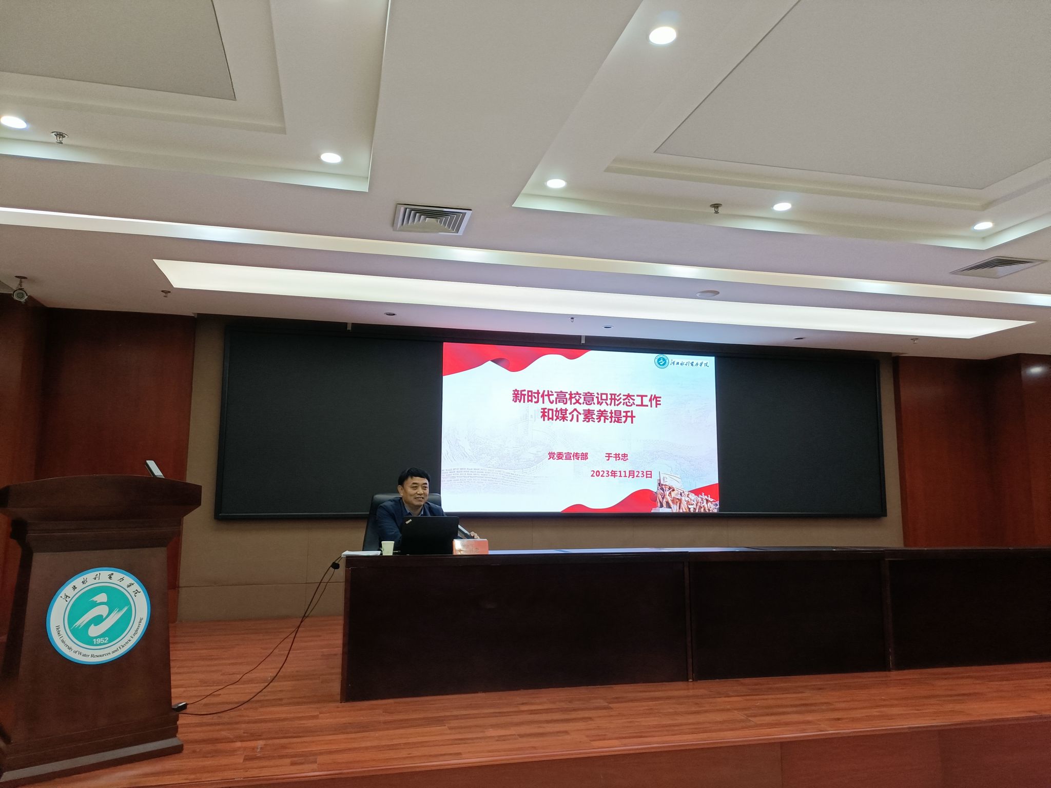 为培养新入职教师依法执教、廉洁从教意识,提升媒介素养,进一步加强职业道德教育,金年会于11月23日下午在弘文•守正楼9楼报告厅举办了2023年新入职教师培训专题讲座。讲座分为“依法执教与高校教师职业风险防范”、“新时代高校意识形态工作和媒介素养提升”、“遵守党纪监察法规,担当廉洁从教使命”三个专题,分别邀请了沧州师范学院政史学院副院长霍凤娥、金年会党委宣传部部长于书忠和纪委副书记李昕欣担任主讲。