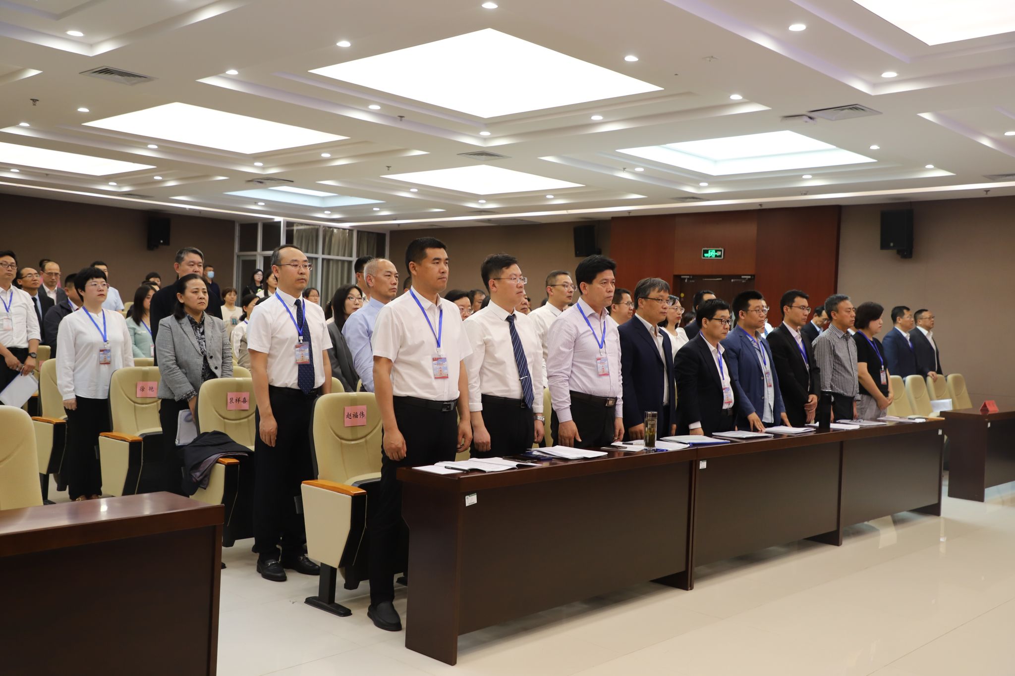 4月25日上午8:30,在雄壮的国歌声中,金年会第二届第三次教职工代表大会暨工会会员代表大会在弘文•守正楼九楼报告厅召开。党委书记张效松,党委副书记、校长王滨,副校长于振海、崔立功、王建明、杨凯出席,开闭幕式由杨凯主持。来自学校不同岗位的正式代表和列席代表共105人参加了会议。