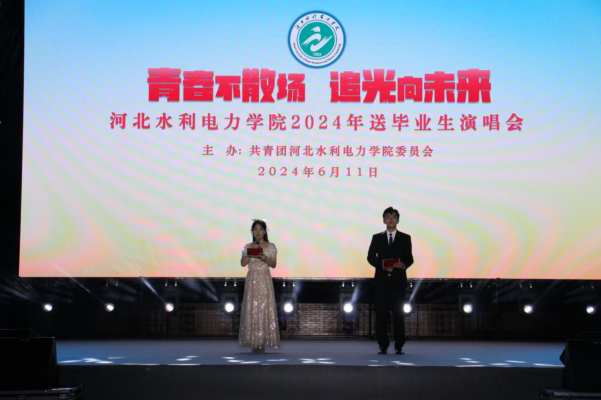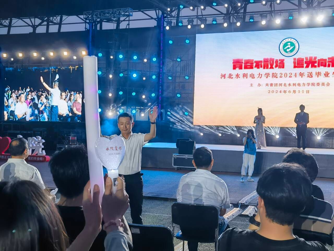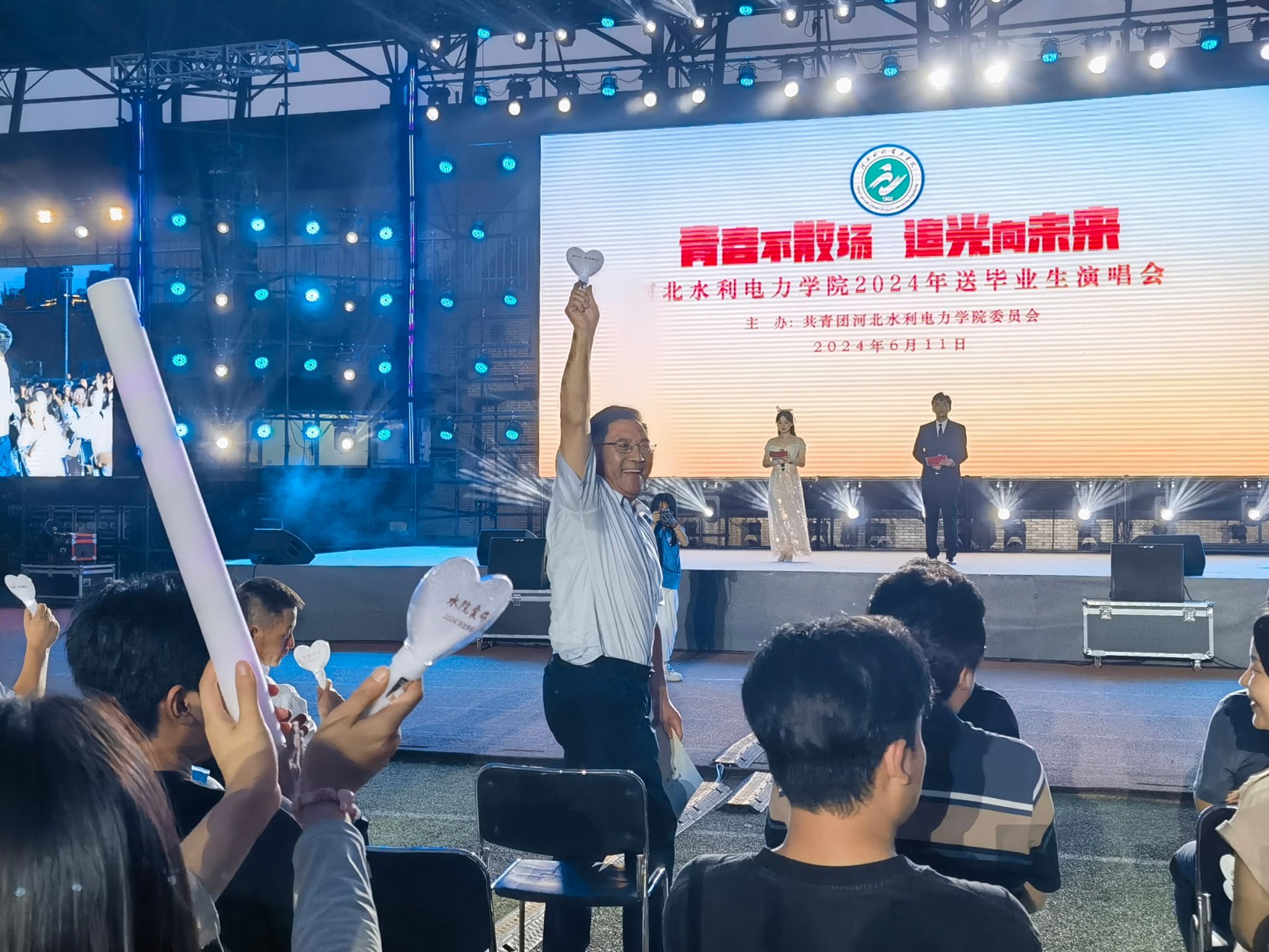 6月11日晚19:30,由校团委主办的“青春不散场 追光向未来”金年会jinnianhuicom2024年送毕业生演唱会在风雨操场精彩上演。党委书记张效松,党委副书记、校长王滨,副校长杨凯,各部门领导老师与3000余名学生共同观看了演出,一起度过了这场温暖感动的青春盛宴。