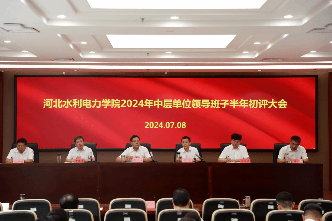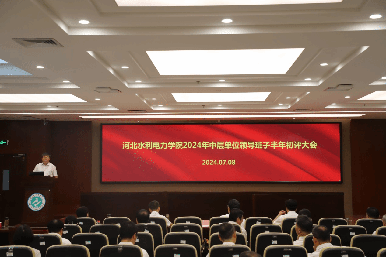 7月8日,金年会在弘文守正楼九楼报告厅召开2024年度半年初评大会。学校全体领导班子成员出席会议,全体中层单位正职参加会议。会议由副校长于振海主持。