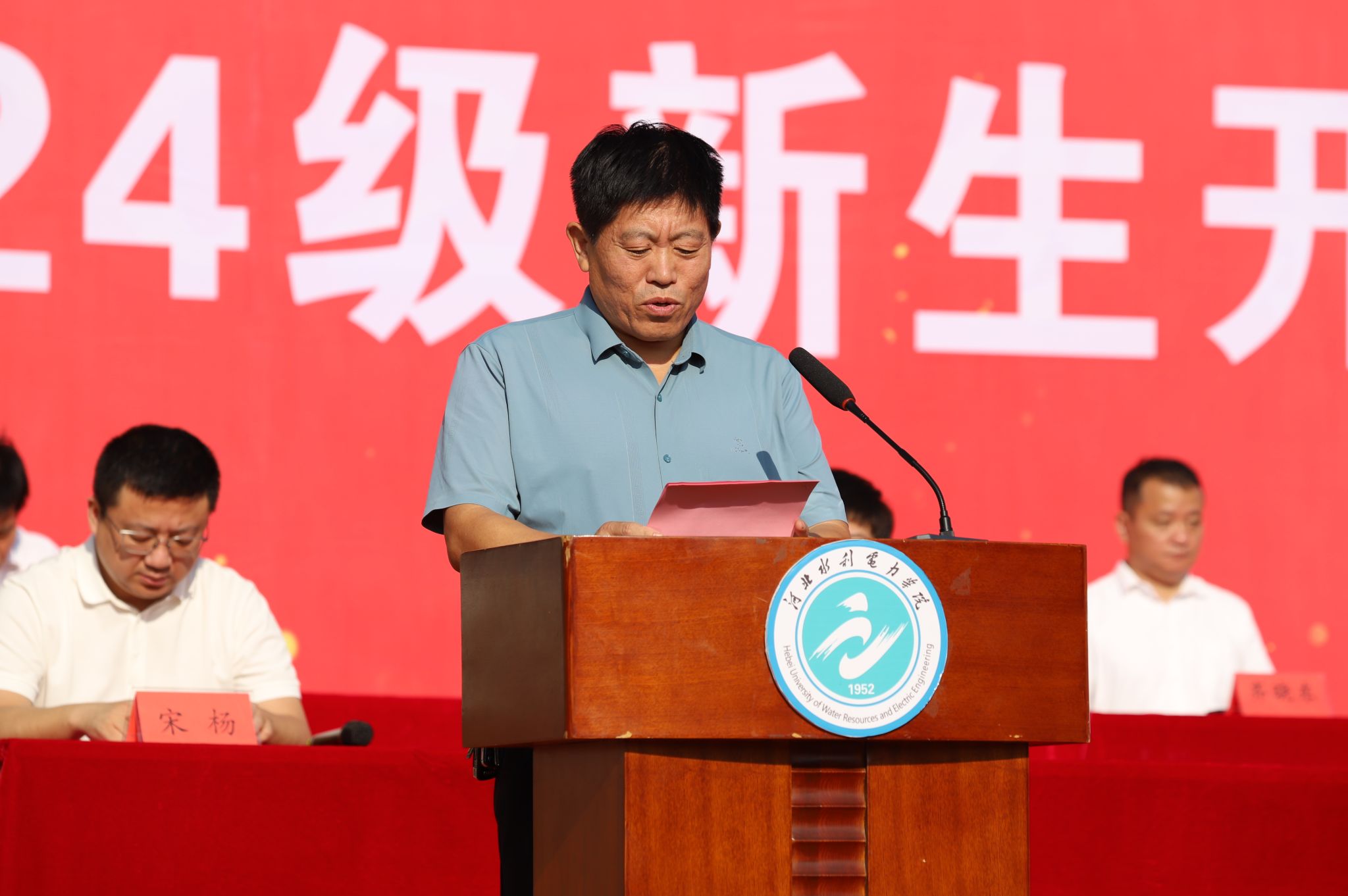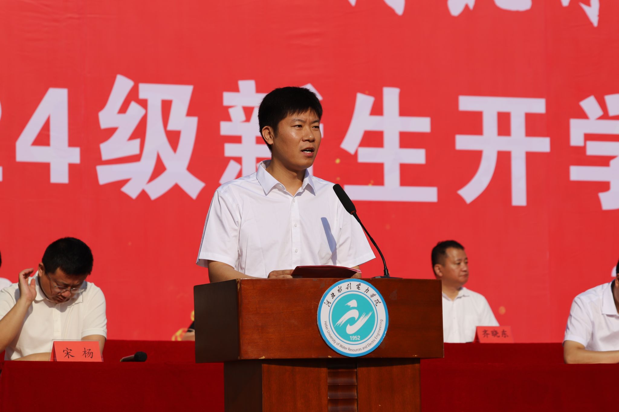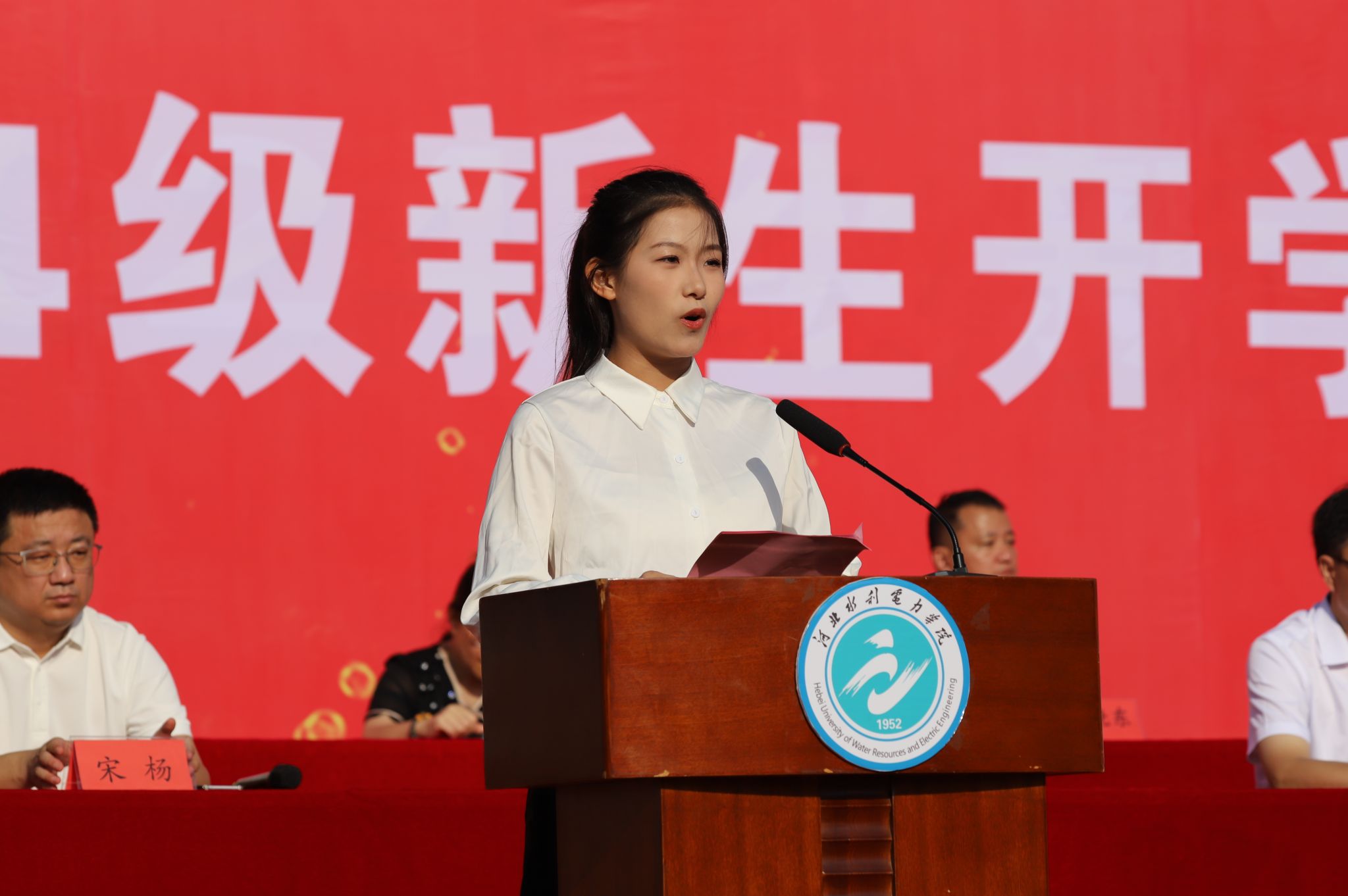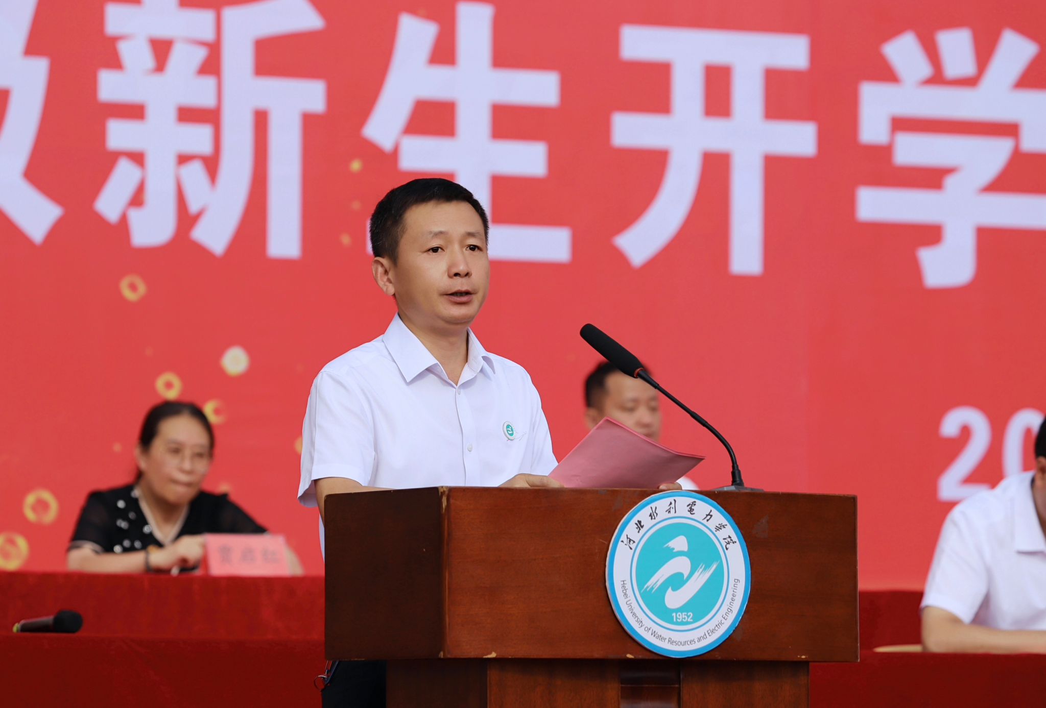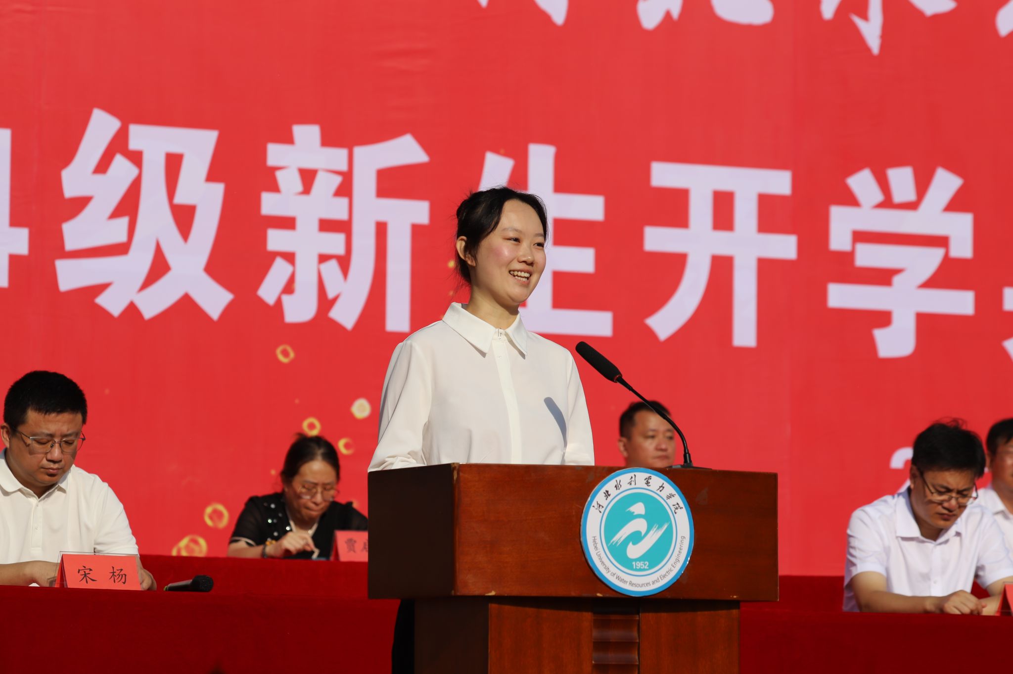 典礼伊始,八系主任依次寄语,表示对全体新生的祝贺和欢迎,送出他们对新生的祝福和期望。在校生代表经济贸易系审计学专业2022级许鸿旸结合自己在学校求学的两年经历,引导新生们做踏实努力、目标坚定的人,不负国家和学校的重托、家长的期望,展现青春作为、彰显青春风采、贡献青春力量。新生代表电力工程系电气工程及其自动化专业安星月表达了作为新时代青年和新一届水院学子对大学生活的美好期待以及对未来四年生活的规划,表示将以“水院人”的新身份在砥砺奋斗中铸就美好未来,奋力书写无愧于祖国、无愧于时代、无愧于自己的壮丽篇章。