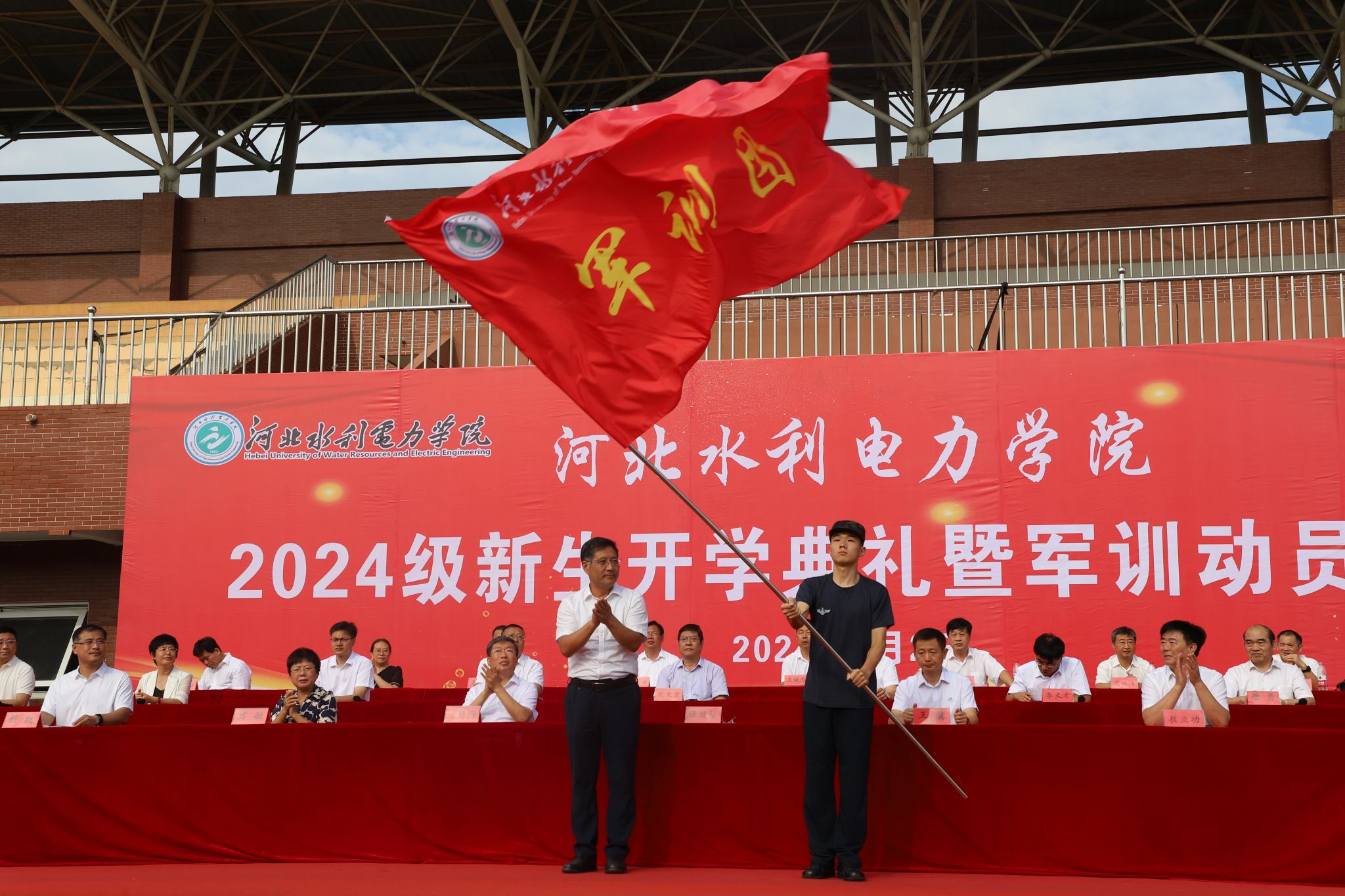 最后,王滨校长发表了题为“弘扬奋斗精神 勇担时代重任”的讲话。王滨首先对2024级新同学表示了热烈欢迎,向同学们介绍了金年会的办学历史、专业特点,并用杰出校友的事迹激励同学们勤奋学习、主动思考,争做堪当大任的时代新人。他对新生同学们提出了三点期望:一是坚持奋斗与时代同行,做“爱国奉献”的水电学院人;二是坚持奋斗与创新同行,做“求真务实”的水电学院人;三是坚持奋斗与磨练同行,做“追求卓越”的水电学院人。最后,他鼓励 2024级全体新生用奋斗擦亮青春底色,用行动担起时代之责,与新时代同向同行、共同前进,积极投身强国建设、民族复兴伟业,让青春绽放绚丽之花,让奋斗点亮时代芳华,从此刻起,踏歌而行,开启新程!