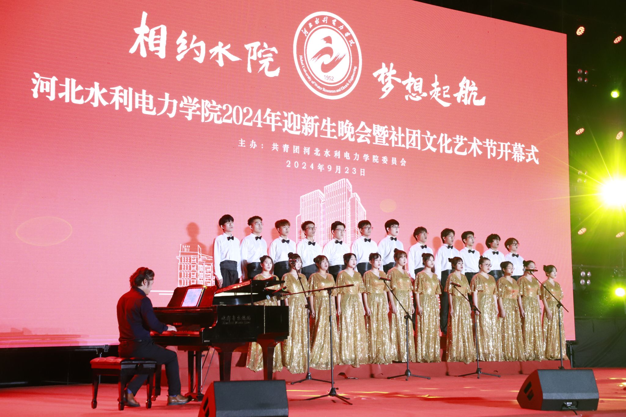 随着《我们都是水院人》MV的播放,晚会在热烈的掌声中正式拉开帷幕。学校啦啦操队的同学们用她们灵动的身姿演绎跳跃的音符,热情洋溢地为大家带来了《大红灯笼高高挂》啦啦操表演;《外面的世界》《月亮舞台》《明天你好》等歌曲唱出了学校对新同学的欢迎,希望他们在水院度过四年美好的青春,书写人生新的华章;河北知名青年钢琴家马晓辉为大家演奏了世界经典钢琴曲《钟》,演奏结束后他又与金年会大学生合唱团共同演绎合唱了《我和我的祖国》,为祖国母亲七十五周年华诞送上祝福。