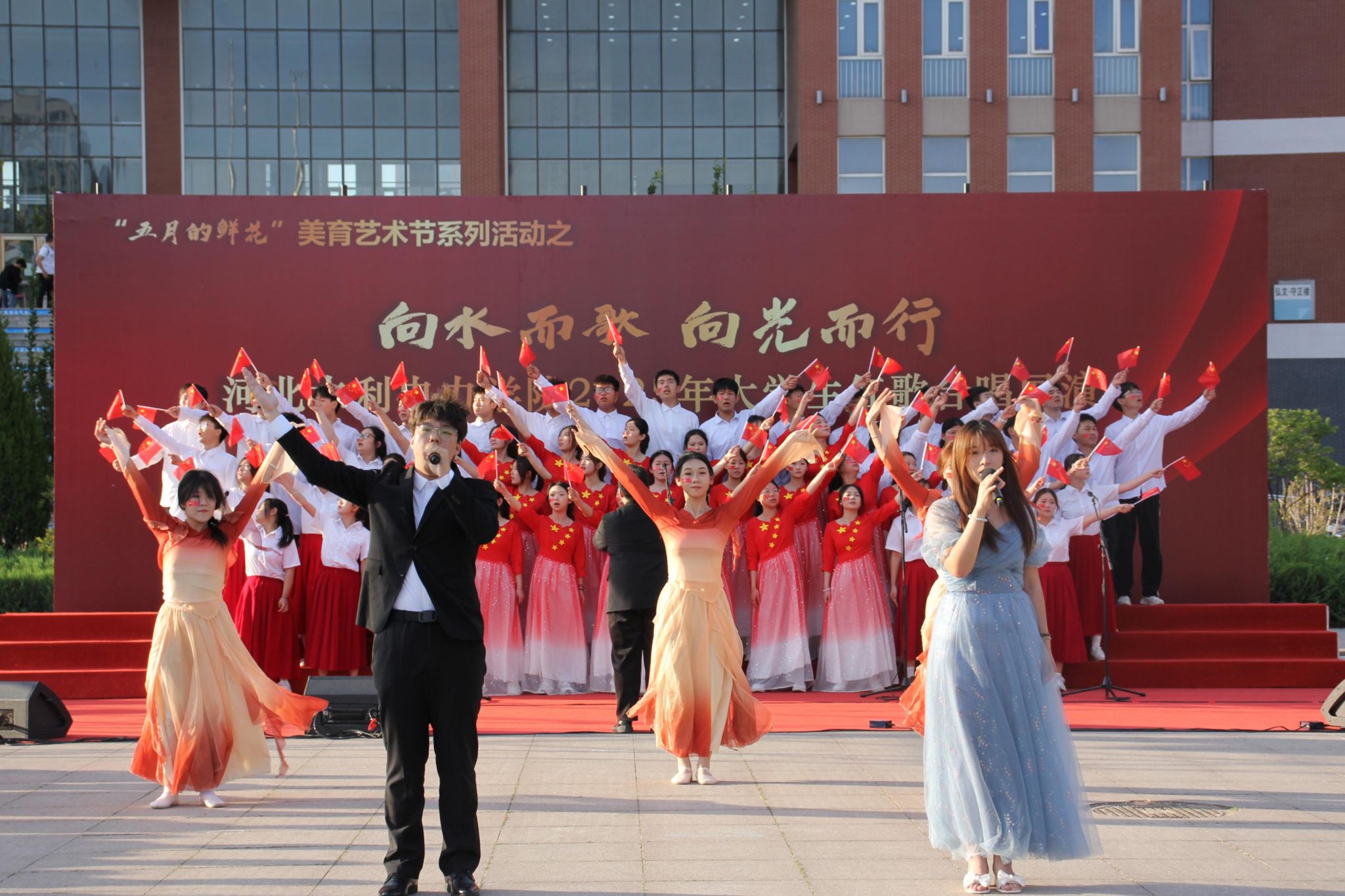 五月的校园,歌声嘹亮。青春的舞台,激情飞扬。5月15日下午,金年会石材广场上红旗招展、歌声如潮,“五月的鲜花”美育艺术节系列活动之“向水而歌 向光而行”金年会jinnianhuicom2025年大学生红歌展演在此举行。校党委书记张效松,党委副书记、校长王滨,副校长于振海,副校长杨凯,纪委书记鲁增秋出席活动。