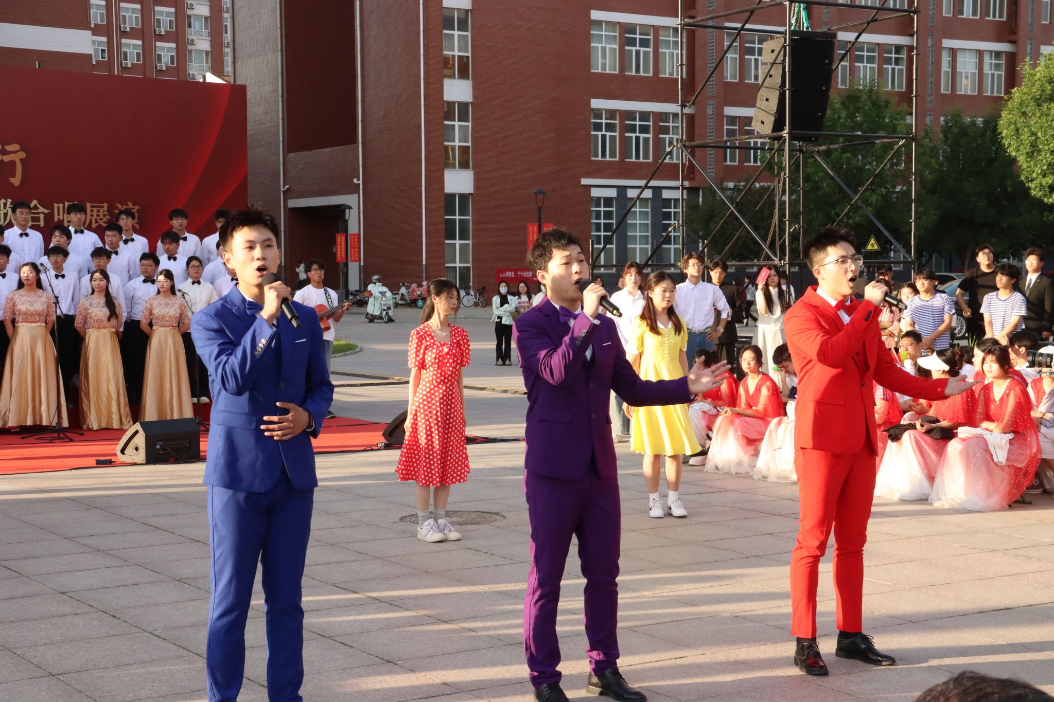 最后,全场合唱方队共同演唱了《歌唱祖国》,本次活动的主要演职人员共同走上舞台,以一曲《二十年后再相会》为本次活动画上了圆满的句号。在主持人的带领下,全场观众向一直支持活动的领导、老师和同学们致敬,并向学校及伟大的党和祖国表达了崇高的敬意。
