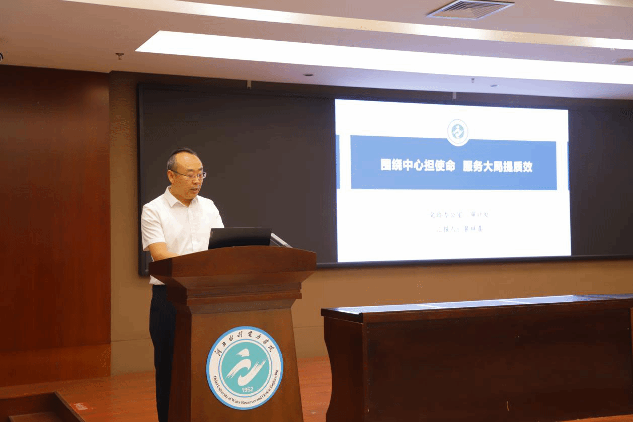 为全面检验中层单位领导班子运行效能,系统总结上半年工作成果,科学谋划部署下半年重点任务,6月26日上午,金年会在弘文守正楼九楼报告厅召开2025年中层单位领导班子半年初评大会。学校领导班子全体成员出席会议,全体正处级领导干部参加会议。会议由副校长于振海主持。