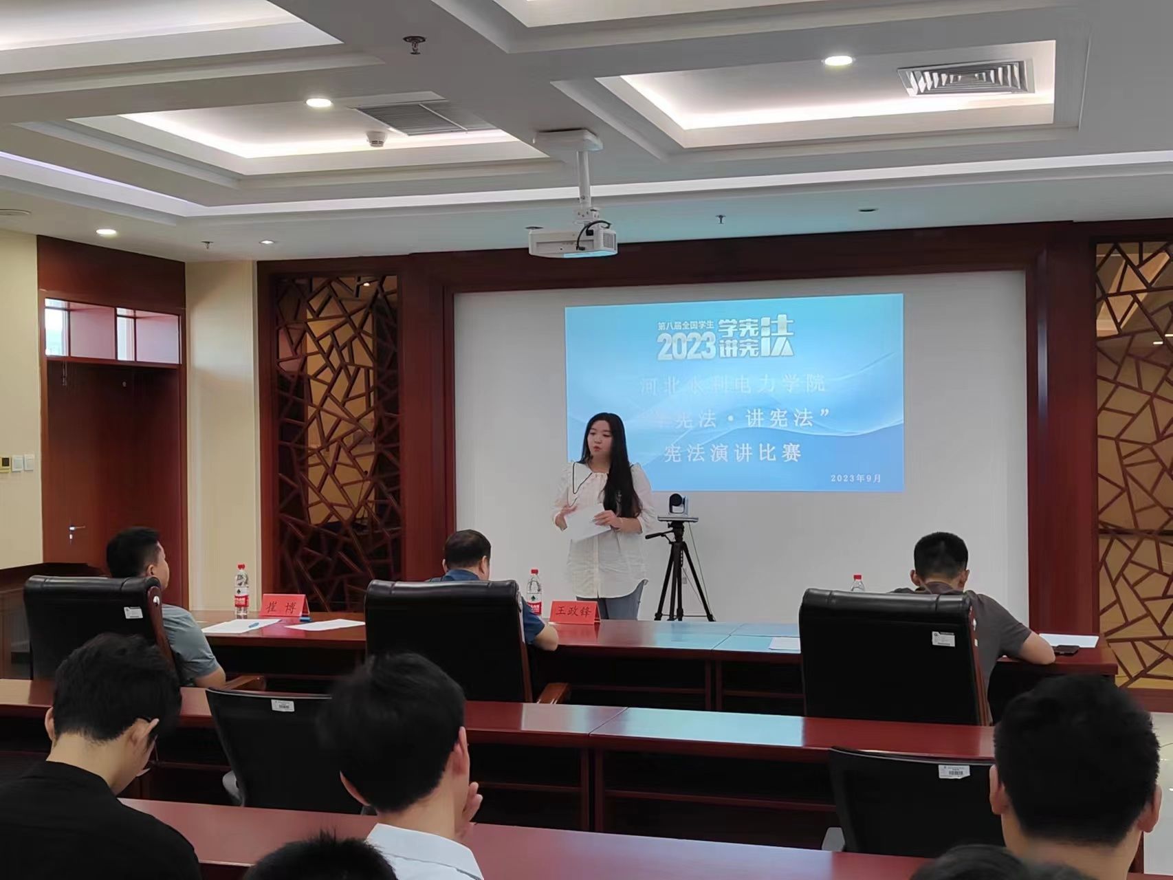 在本次“学宪法 讲宪法”系列活动中,电气自动化系元阳烁同学和计算机系王近锟同学脱颖而出,9月27日将代表我院赴石家庄分别参加省教厅举办的省级演讲比赛和素养竞赛决赛。通过此次“学宪法 讲宪法”系列宣传活动,校园内营造了浓厚的“学宪法 讲宪法”的法治氛围,对弘扬宪法精神、维护宪法权威具有积极意义。同学们纷纷表示:在今后的学习生活中,将以永不懈怠的精神继续学法、用法、守法,不断提升法治意识,增强责任感和使命感,以切身行动弘扬宪法精神,为建设法治水院贡献自己的力量。