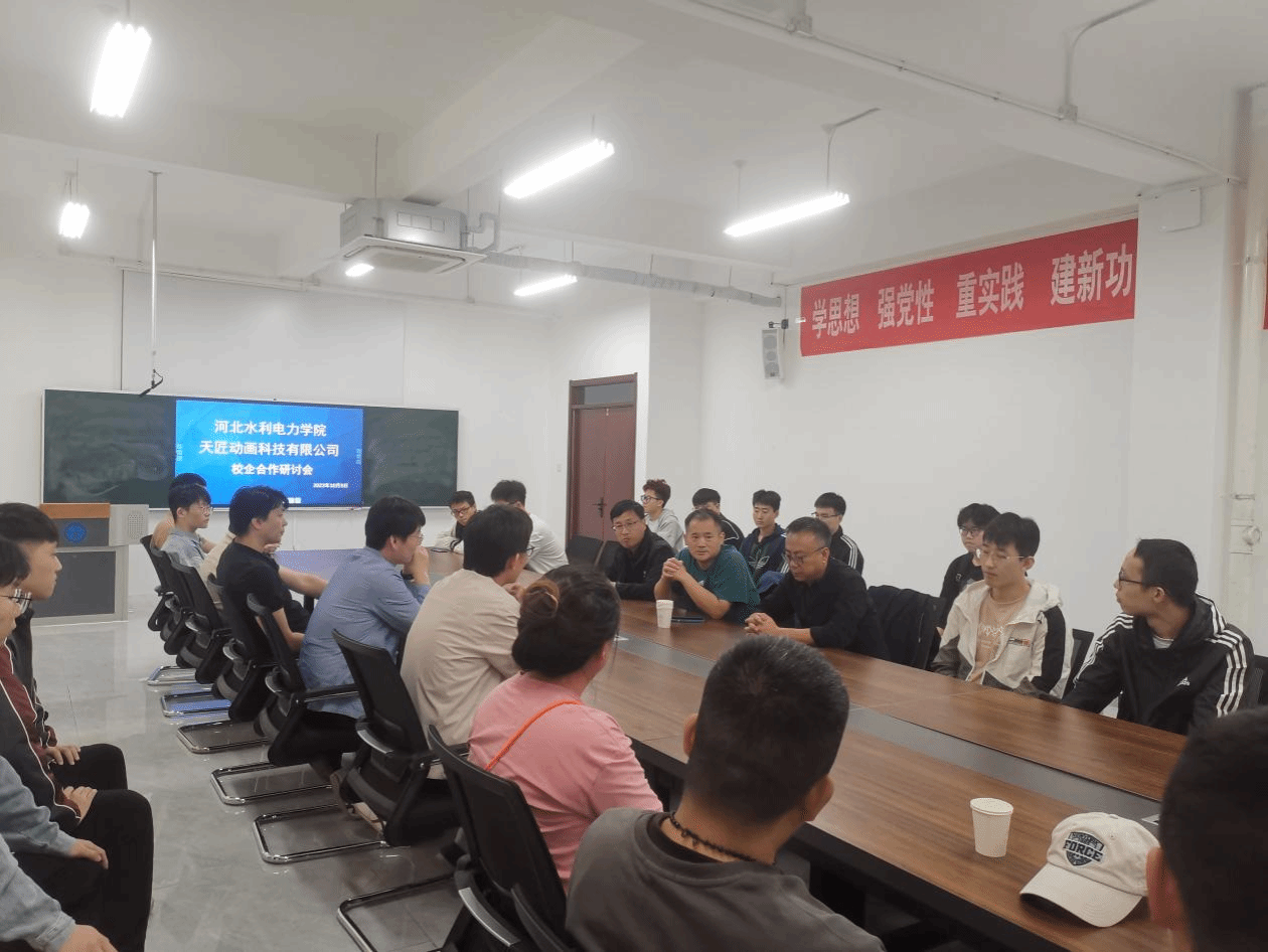 随后,一行人与数字媒体技术专业学生座谈。崔炳德再次感谢了天匠为数字媒体技术专业学生提供的实践学习机会。之后,崔炳德对学生提出了三点嘱托,一是要热爱专业。同学们要对行业保持热情,不断提高自己的技术能力,在专业之路上坚定不移地走下去;二是要珍惜来之不易的实践机会。同学们要充分利用此次综合实践的机会磨练专业技术,争取在有限的实训时间内得到最大限度的技术提升;三是要“拥抱天匠,回归天匠”。在之后的实训中,同学们要在实际项目中不断学习和探索,努力完善自己,争取达到天匠的用人标准,顺利就业。
