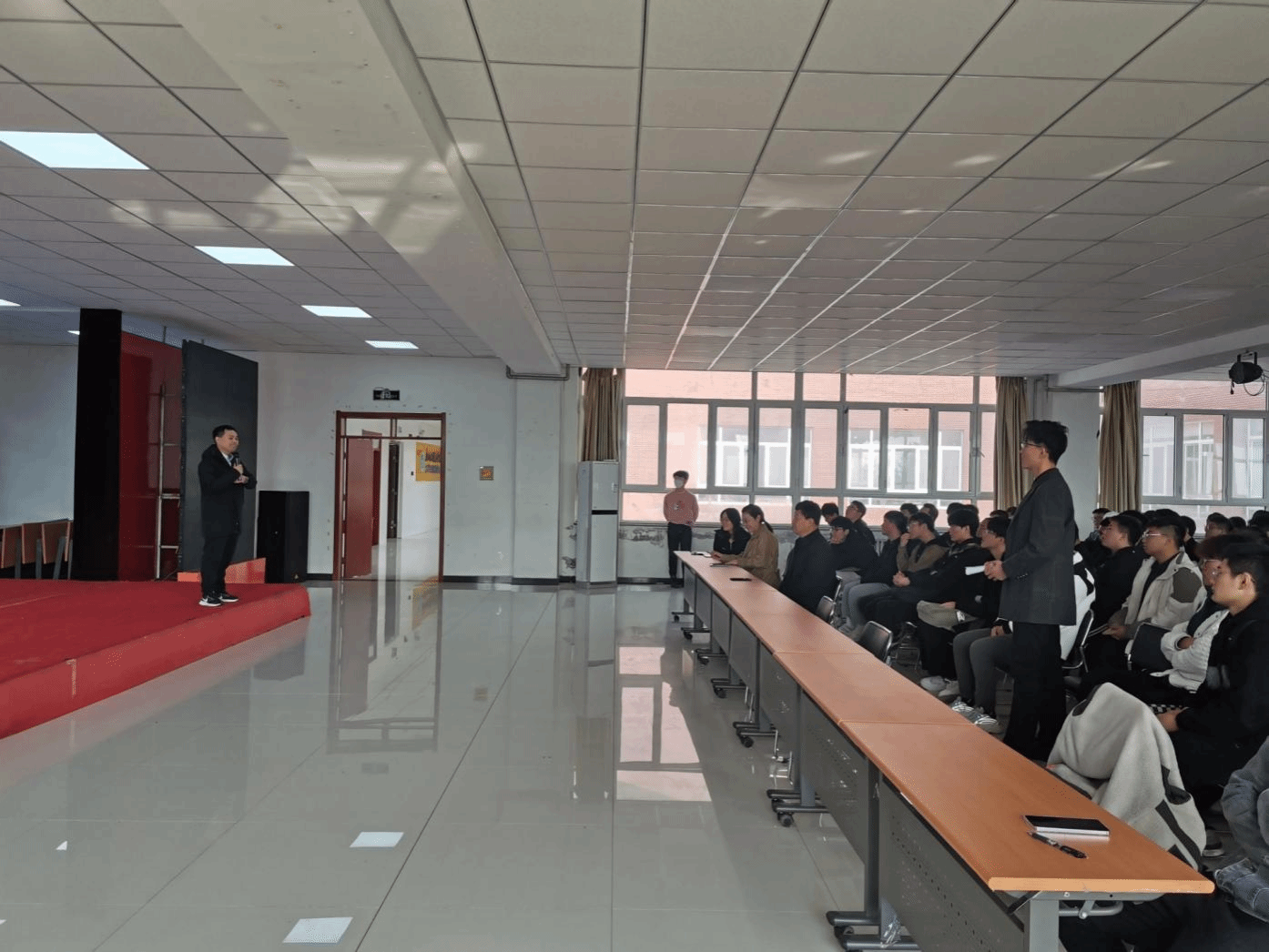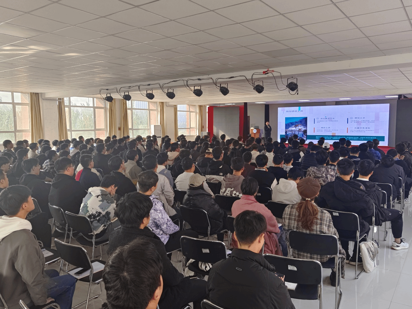 张局长首先就西藏的文化底蕴、企业背景、企业文化、发展前景以及对员工的管理文化等方面进行了详细宣讲,对报名、笔试、面试、确定录取意等报考流程进行了重点介绍,同学们对国家电网西藏电力公司兴趣浓厚,很多同学对自己关心的问题进行了现场提问,宣讲现场热火朝天