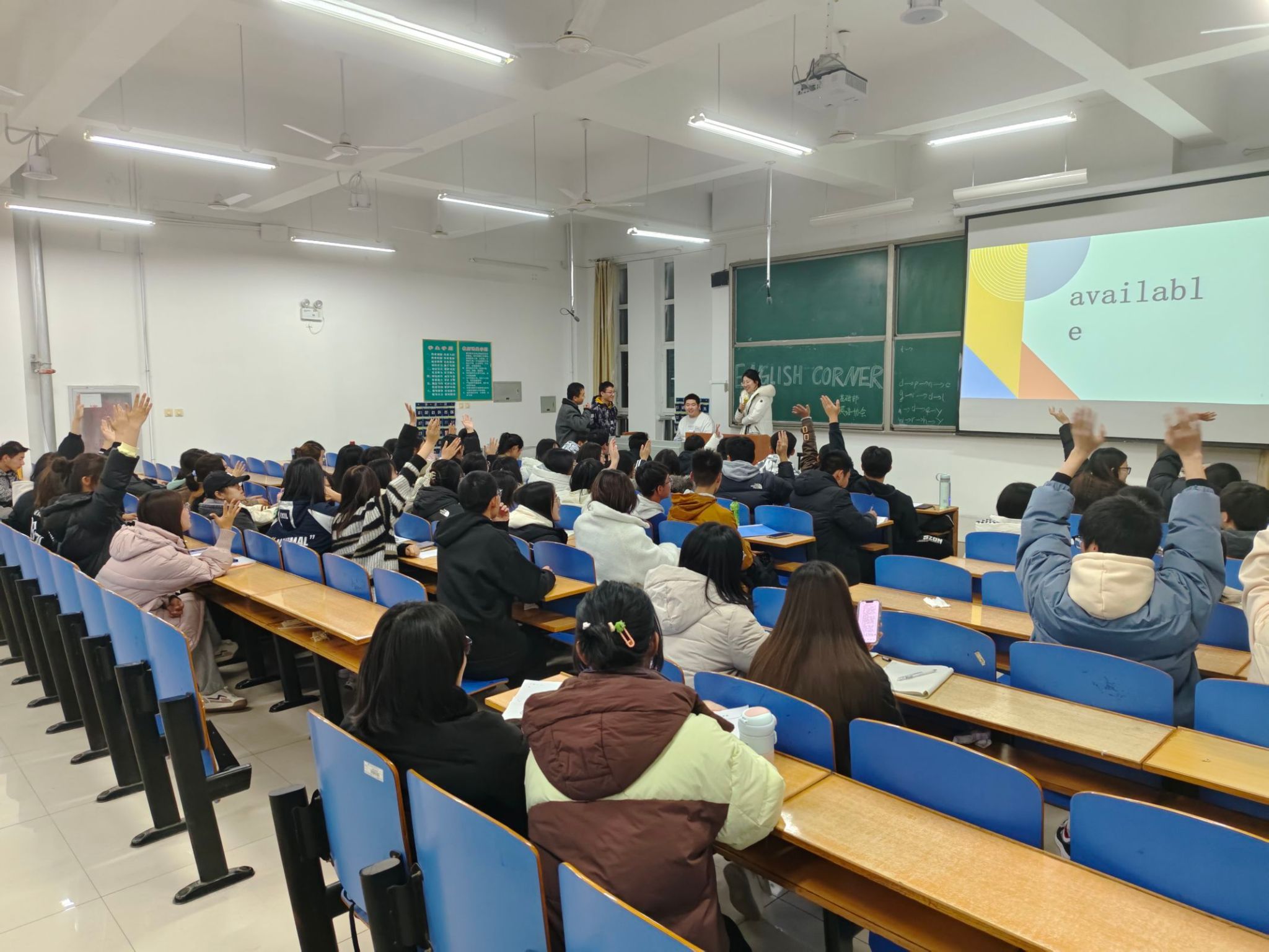 为促进学生英语口语表达能力的提升,丰富校园文化生活,金年会于11月30日晚7点在创新楼举办了一场精彩纷呈的英语口语角活动,本次活动由校团委和基础部共同主办,英语协会对此次活动进行了组织策划。基础部英语教师刘建怀和苏畅主持了此次活动,为学生们解答疑惑,提供专业的口语建议,帮助学生更好地理解和运用英语,提升口语水平。