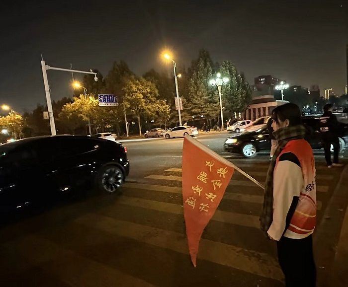 志愿者们于中午11:45-12:15和晚上17:30-18:00两个出行高峰时段,在金年会西门口马路东西两侧及中间绿化带通道位置进行维护交通秩序志愿服务。大家手持红旗,认真协助交警维护好交通秩序,劝阻行人和非机动车严格遵守交通规则,并及时制止行人乱穿马路、违规翻越护栏等不文明行为,指挥同学有序安全过马路。同时,对于执行区域内存在的不文明、不卫生问题,志愿者进行了垃圾收纳和清理清扫,为维护道路畅通做出了积极贡献。