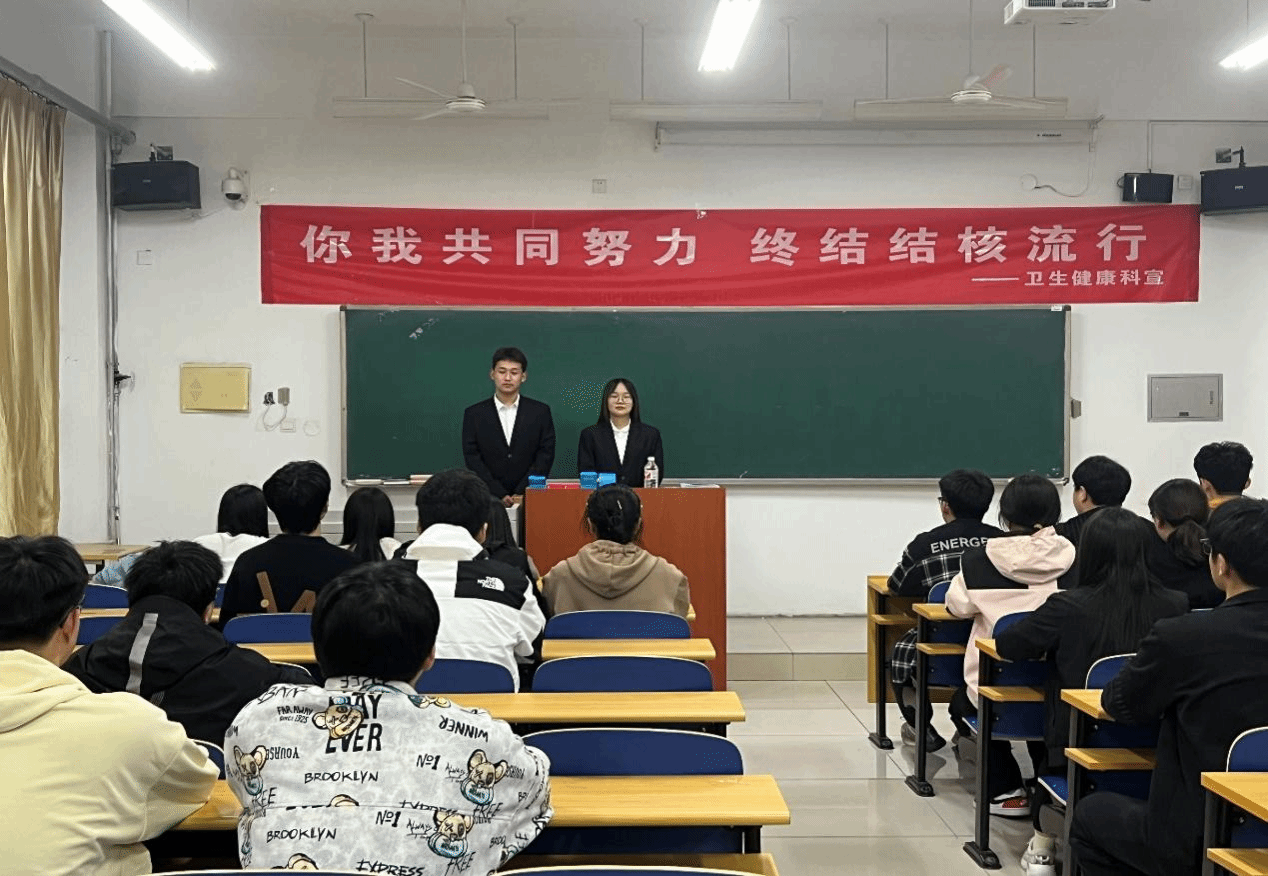 活动伊始,“健康教育”主持人详细地讲解了肺结核病的概念、严重危害、传播途径、常见症状及预防措施等内容,建议同学们要充分认识到预防结核病的重要性,并做到教室定时开窗通风,保持室内空气新鲜,养成良好的卫生习惯。随后大家共同观看了肺结核防治的相关视频,同学们进一步加深了对肺结核防治的了解。
