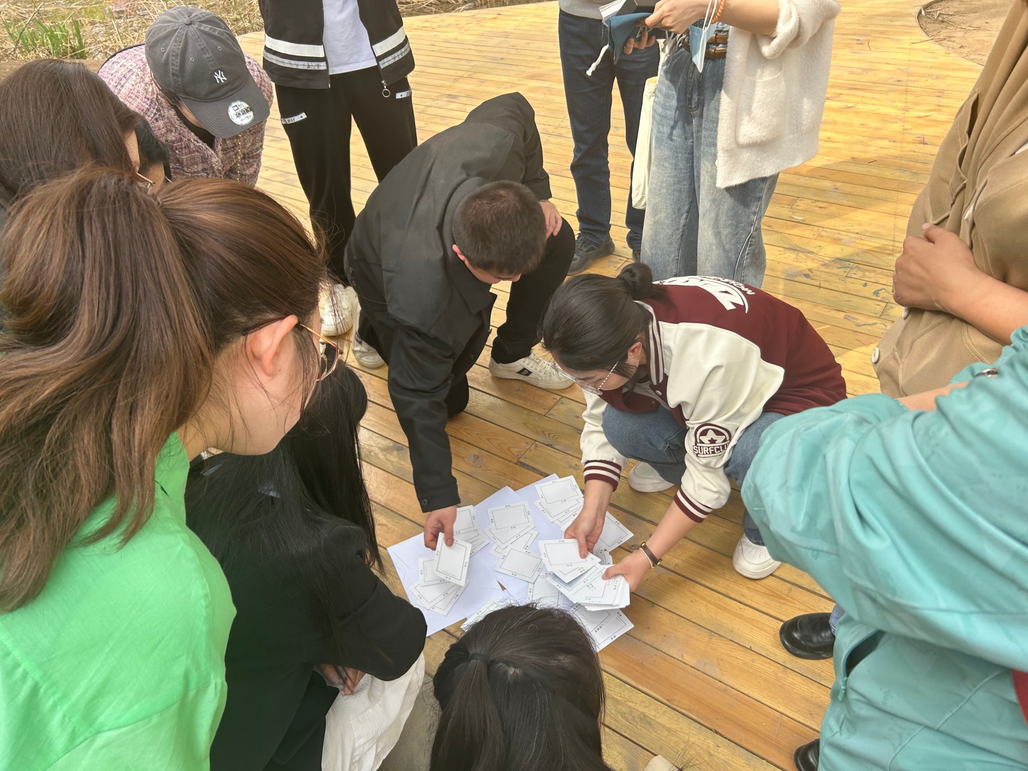为进一步增强心理健康教师与辅导员的联动力量,提升育人合力,本学期学工部在一线辅导员中选任5名兼职心理健康教师,形成辐射各系、专兼职相结合的20名心理健康教师团队。此次活动由学工部副部长路鹏主持,心理健康教育中心王佳慧负责技术展示,全体心理健康教师在大自然中体验沉浸式“团体辅导”。在活动之初,王佳慧老师向老师们介绍了团体辅导的基本内涵、功能、类型、准备及操作流程等内容,并结合金年会学生成长性团体辅导的案例,剖析团体辅导技术科学要义。在老师们了解团体辅导理论知识后,开始了亲身体验团建活动。活动伊始,王佳慧老师和团体成员共同确立团体契约,要求全身心体验活动,排除外界干扰、包容接纳彼此、不攻击不指责等。在热身活动中,王老师带领团体成员进行第一个热身活动——“如果我是…”,引导成员们舒张身体,让心慢慢静下来,体察自身状态,观察、感知并与所处环境产生链接,选取环境中的任何物品来代表自己,经过沉静、体悟后,成员们分别用麻雀、树叶、树枝、高楼、游客、湖水等代表自己,并表达自己当下的感受。在初步适应环境,尝试自我体悟之后,进入了第二个活动——“潜意识投射卡”,成员们先是从繁多的文字卡中挑选出了平静、自由、舒服、安心、相信、外向、子女等与自己最为契合的主题词,体察所选主题词带来的情绪体验,抓住思绪的流动;随后根据主题词进行图画卡的选择,文字卡与图画卡的结合,一个个幸福、自由、安心、子女的背后故事逐渐涌现,老师们在放松的氛围下逐渐打开自我,展现出了内心的平衡状态,不断体察、觉知并接纳自我。