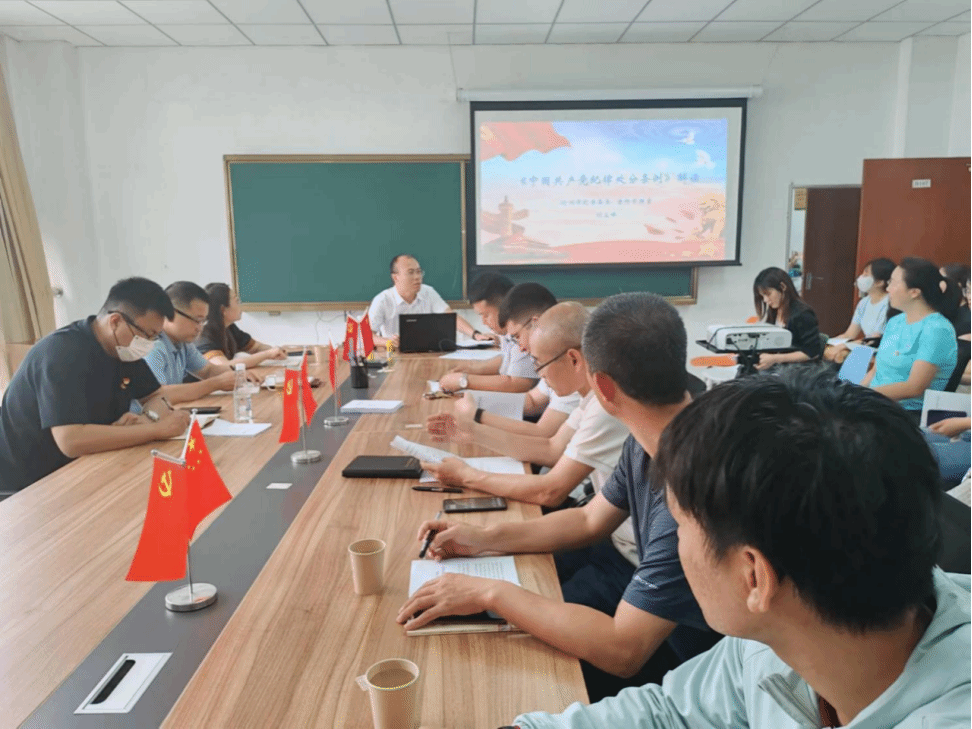 贾启红结合讲座内容,就深入开展党纪学习教育系列工作,要求各支部深刻认识到高标准、高质量开展好党纪学习教育是一项重大的政治任务,切实履行好主体责任。班子成员要率先垂范,各位教师要不断提升思维高度,把握关键环节、抓好重点学习,推动党纪学习教育各项工作任务迅速落实。