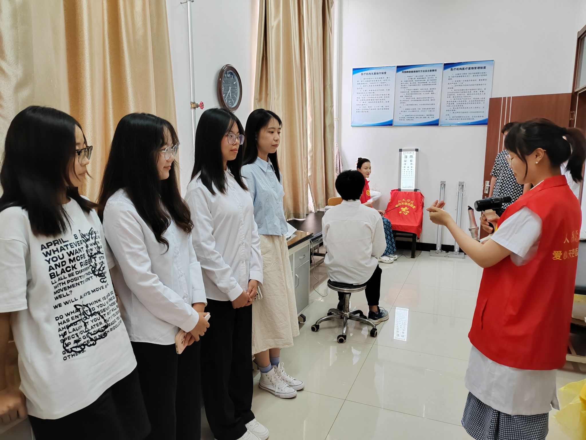 首先,沧州市人民医院眼科团队为金年会师生科普了视力保健知识,开展了视力检测、眼底检查,对同学们眼部问题进行初步筛查并对同学们提出的问题给予了充分的解答。