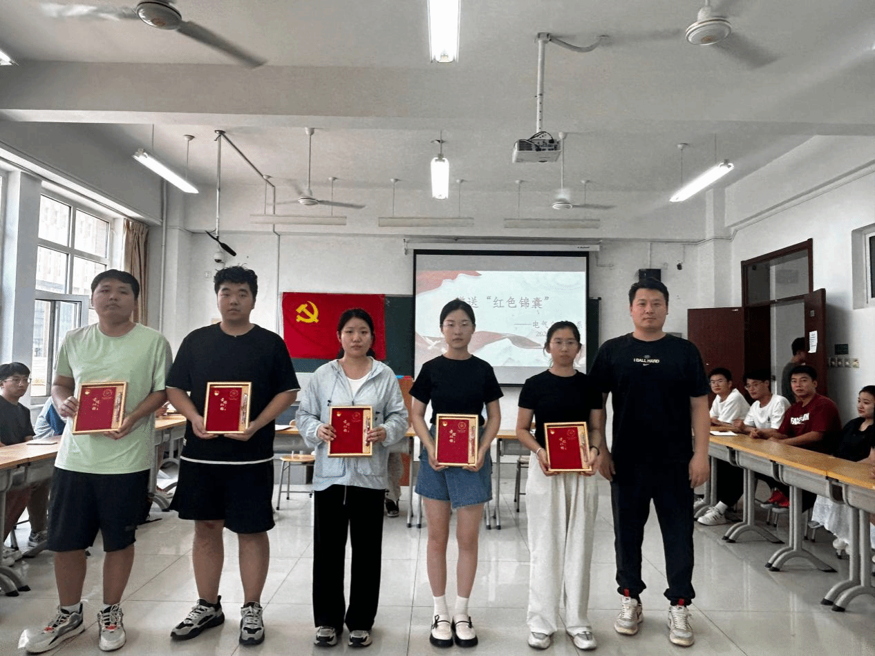 接下来,电气自动化系学生党支部为全体毕业生党员举行集体“政治生日”,老师们分别向学生代表赠送了装有党徽、钢笔和笔记本等物品的“红色锦囊”,并合影留念,以此表达对毕业生党员的殷切期望和美好祝愿。