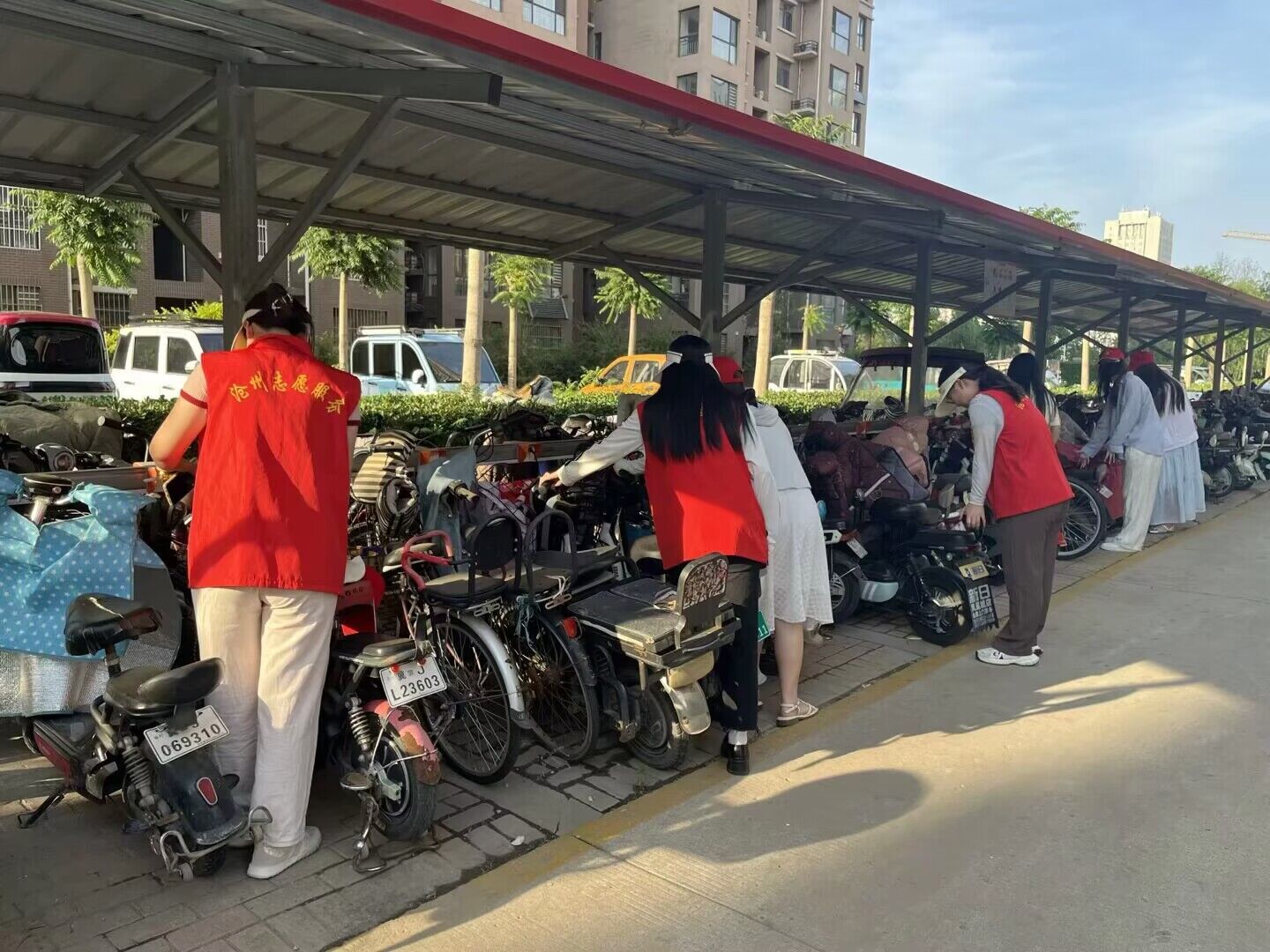 在活动过程中,毕业生党员们手持夹子和塑料袋认真捡拾路面上和路边草地上的垃圾,对绿化带、花坛等卫生死角也进行了全方位的清理,甚至有些同志放下手中的工具,徒手对一些难以清理的卫生死角进行拾捡,让每个角落都焕然一新,毕业生党员还摆放了自行车、电动车,引导停车秩序,向市民宣传居民公约和创城精神等。毕业生党员亮出身份、亮出形象,积极、主动、热情地进行志愿服务,充分展示了我校党员志愿者的良好风采。