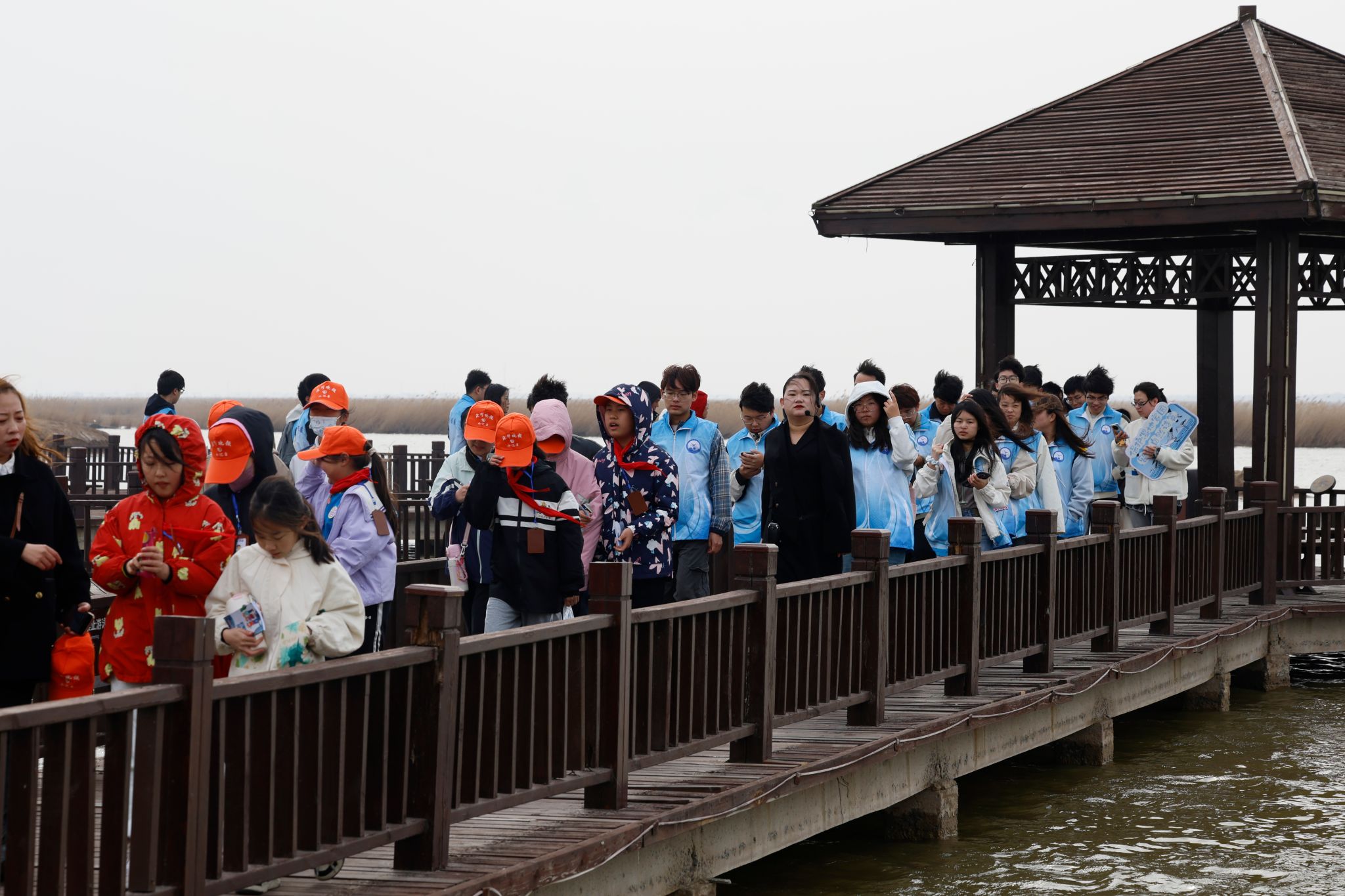 跨校联动探秘滨海湿地,童心共筑生态保护屏障。3月26日,为积极响应2025年“世界水日”“中国水周”主题号召,深化青少年对滨海湿地生态系统的认知,培养生态保护的意识与实践能力,金年会联合黄河路小学、上海路小学近200名师生,赴南大港湿地开展“守护滨海湿地”沉浸式生态研学活动。