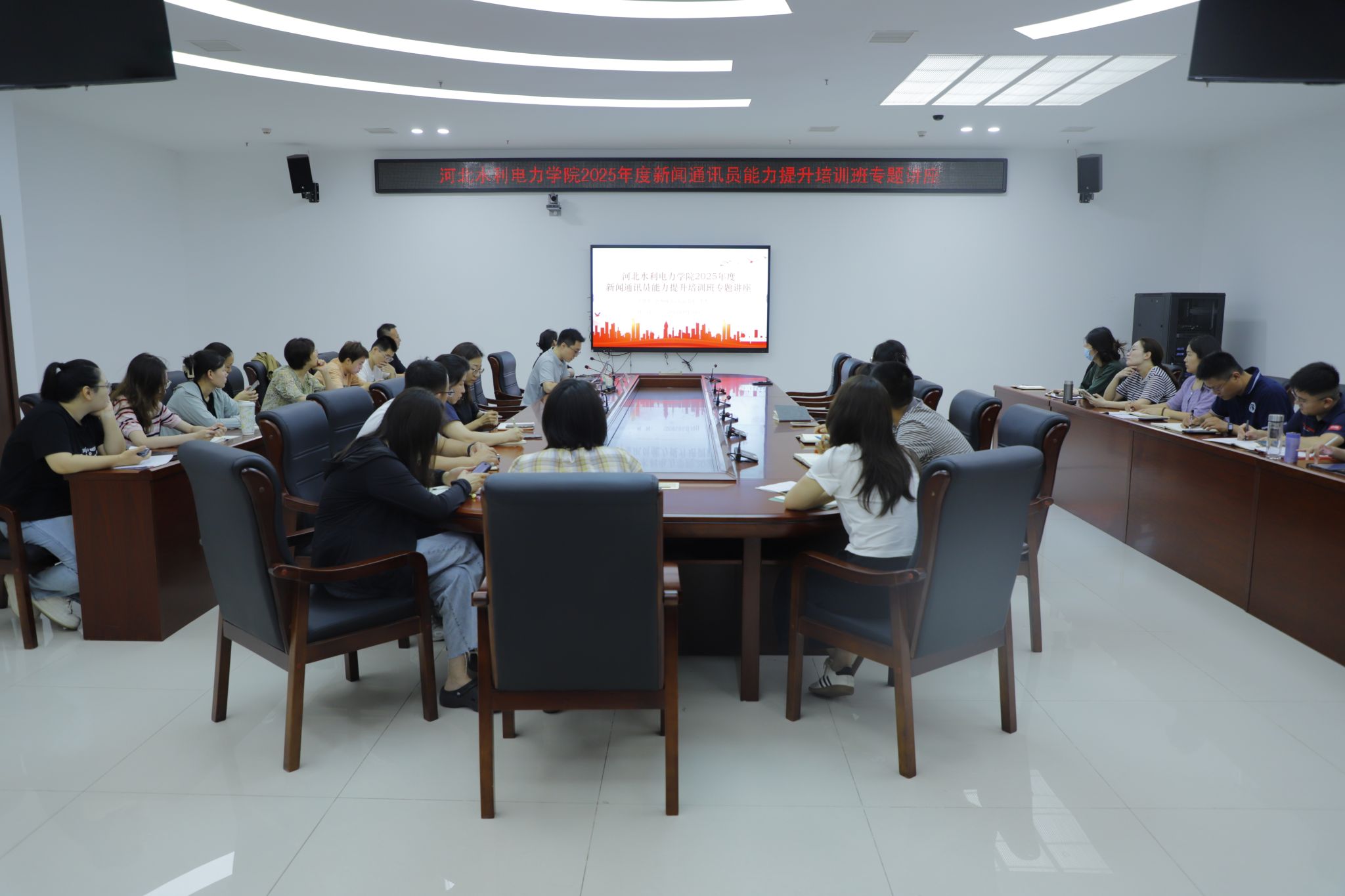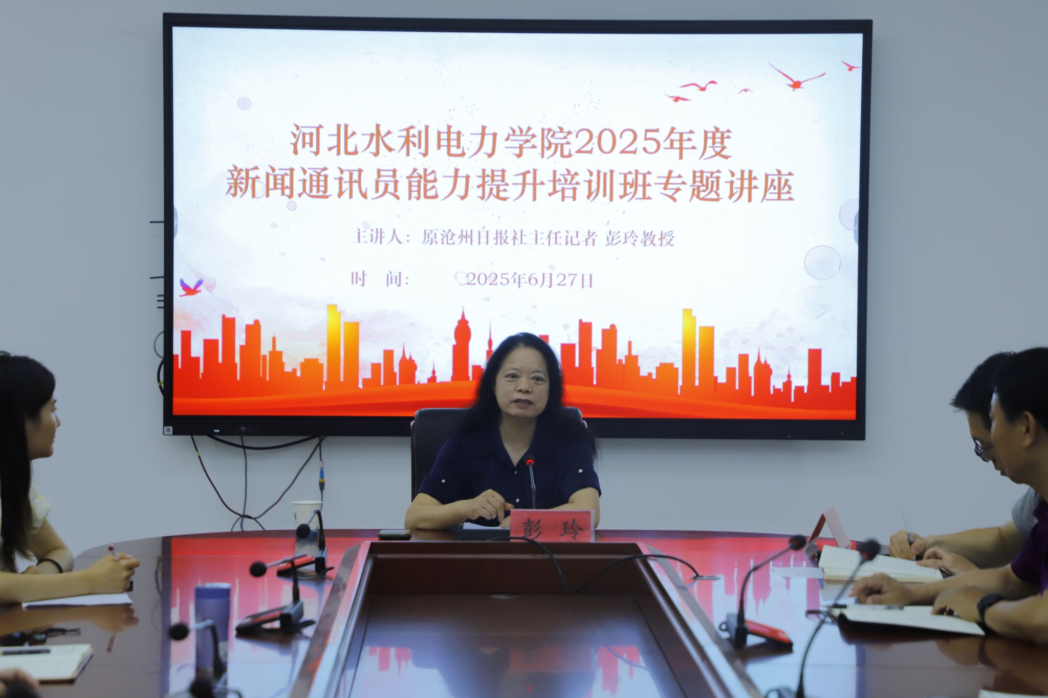 本次培训特邀沧州日报社原主任记者彭玲与沧州师范学院新闻学副教授李杰担任主讲。彭玲结合二十余年的从业经历,深入浅出地讲解了文字工作的内涵以及新闻写作的标准、新闻稿件的构成要素及价值导向,她的分享不仅传授了新闻传播规律的专业知识,更融入对人生意义的思考,兼具理论高度与实践指导性,被学员们誉为“一堂生动的新闻专业课、人生思政课和心灵对话课”。
