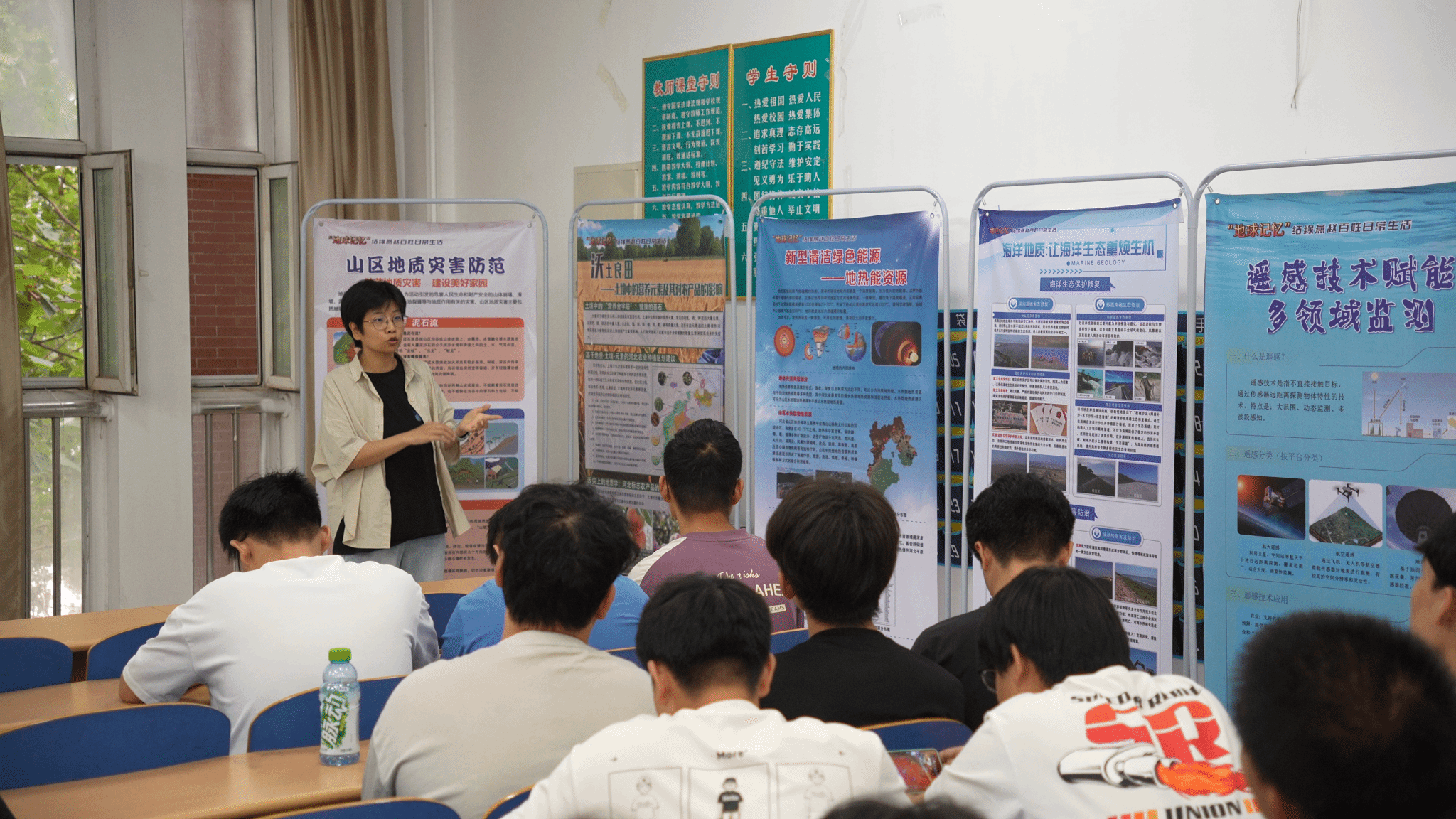 与此同时,实验室还精心筹备了以“探索地球密码,守护美好家园”为主题的科普展览。展览内容广泛,涵盖了清洁能源、地质灾害、遥感技术应用、地质实验测试及地质文化旅游等多个前沿领域,全面展示了地质科学与工程的最新成果与应用实践,为师生打开了一扇了解地球奥秘、参与环境保护的窗口。