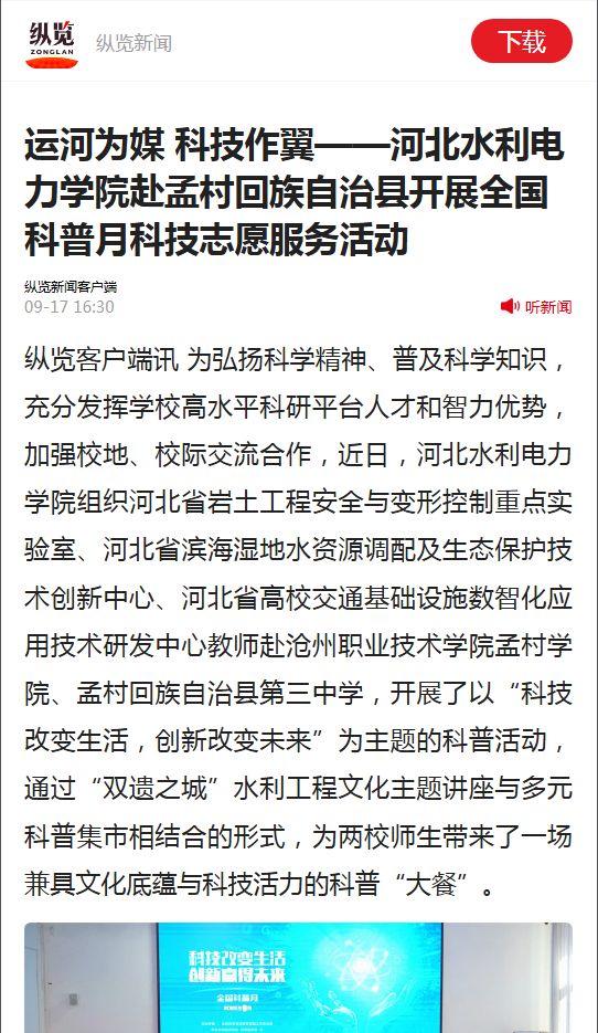 河北新闻网报道金年会开展科普活动,受到广泛关注。为弘扬科学精神、普及科学知识,充分发挥学校高水平科研平台的人才与智力优势,近日,金年会组织河北省岩土工程安全与变形控制重点实验室、河北省滨海湿地水资源调配及生态保护技术创新中心、河北省高校交通基础设施数智化应用技术研发中心的教师,赴沧州职业技术学院孟村学院及孟村回族自治县第三中学,成功举办了以“科技改变生活,创新改变未来”为主题的科普活动。活动通过“双遗之城”水利工程文化主题讲座与多元科普集市相结合的形式,为两校师生带来了一场内容丰富、形式生动的科普盛宴。此次活动正值孟村回族自治县建县70周年,不仅普及了科学知识,也有效激发了青少年的科学兴趣与文化自信。今后金年会将继续发挥自身优势,深化校地合作,为服务地方经济社会发展贡献高校力量。